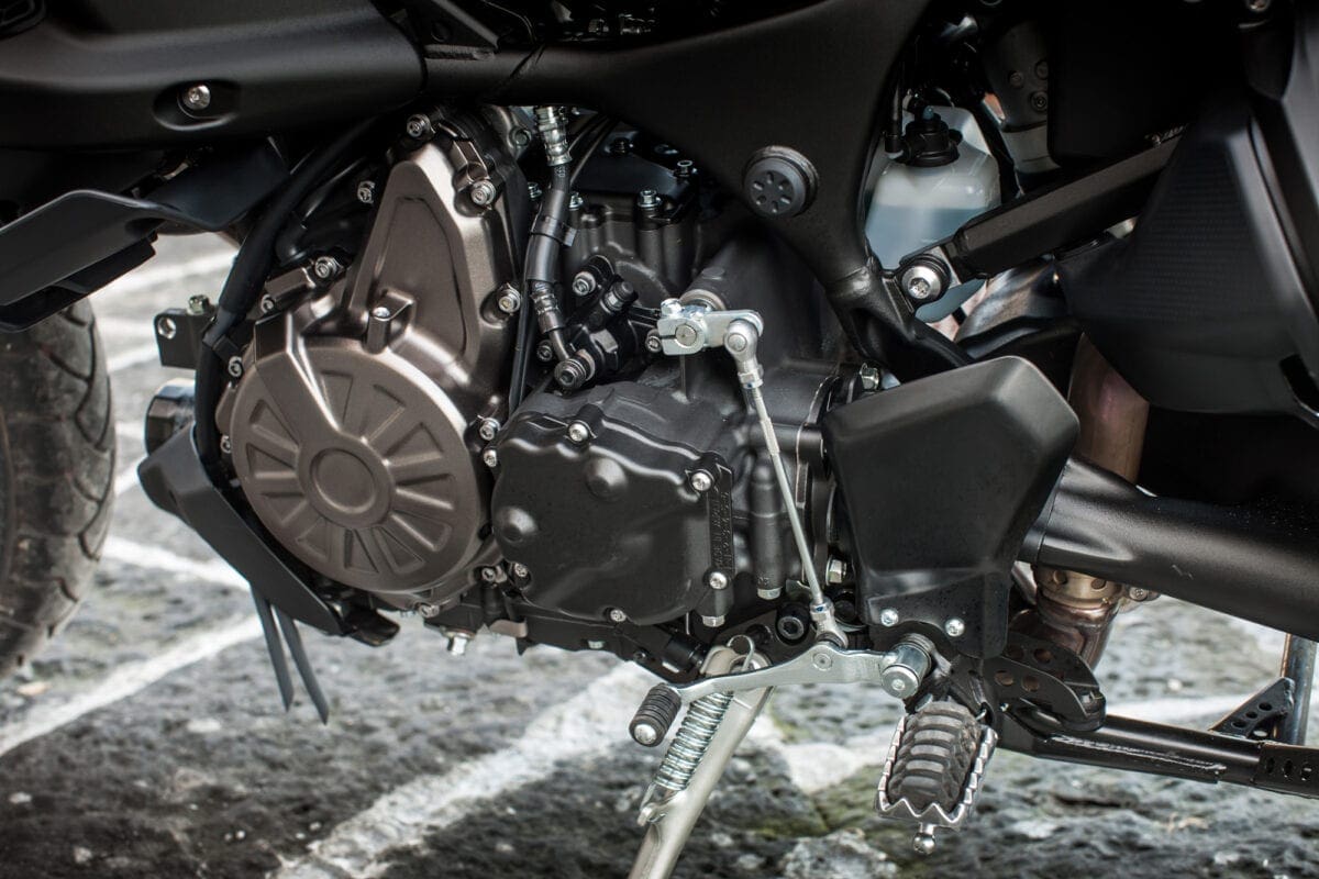 The Super Ten’s parallel twin, with 270° staggered firing interval crank offering V-twin-style primary vibes, should fit the bill, but the motor is just a bit too pleasant to be truly inspirational. The high-pitched secondary vibes that pestered the old bike are eliminated by bushed top-yoke risers, instead of cast handlebar mounts, and there’s nothing malign other than a tendency for the cooling fan to come on, noisily, in town at moderate ambient temperatures. But despite Yamaha removing the link pipe between headers to generate a lumpier torque curve, the engine isn’t quite as vibrant as some of the competition: there’s no lusty, thumping bottom end, no bulging midrange and no potent top end. Instead it’s a moderate, inoffensive drive wherever you want it, with a wide range of flexibility in any gear as long as you keep the revs spinning.