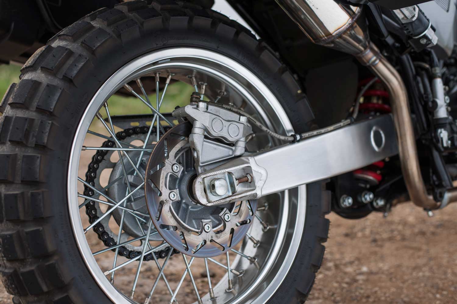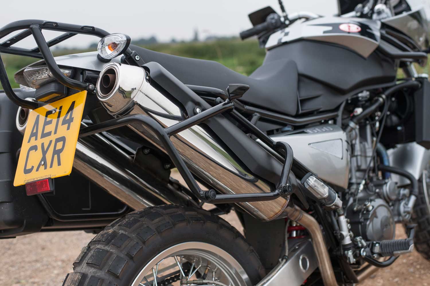This bike had the full Explorer kit fitted, which includes removable Givi Trekker 33 litre panniers, a rack for a top box, hand guards and short fork protectors. Continental’s TKC 80 tyres were also fitted, which while dual-purpose, they’re certainly more aimed at the dirt than road. The tyres’ large blocks – perfect for digging into loose mud – make for a bike that drops into corners quite quickly on the Tarmac, and doesn’t offer the stability you expect at high road speeds. However, the chassis keeps everything under control, and there’s a choice of Continental’s more road-biased Trail Attack for those dabbling in dry green lane riding, or the Road Attacks if you don’t intend to venture off the black stuff. Personally, I’d opt for the Trail Attacks, but the stunning spoked wheels can be shod to suit your riding style and aspirations.