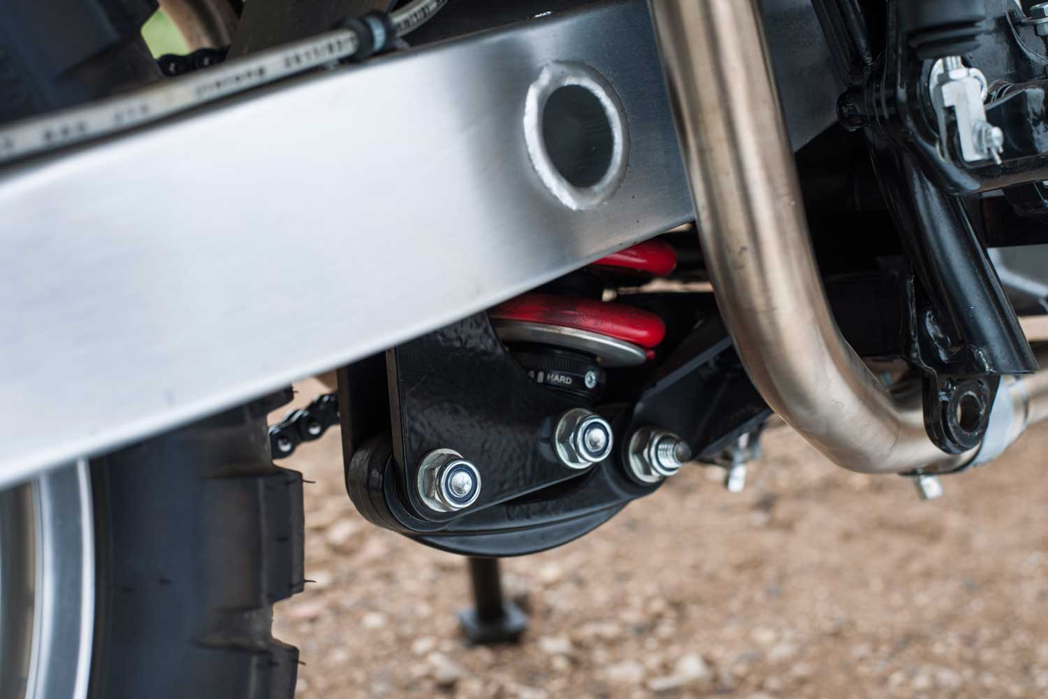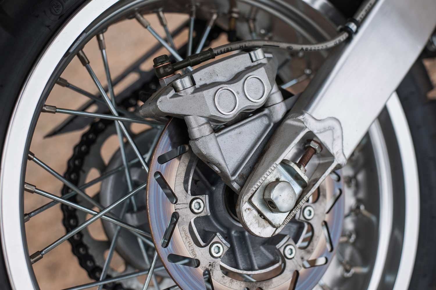 Front brakes are twin two-pot calipers biting on solid 320mm discs , suspended by unadjustable Paioli forks. The rear shock is a Bitubo unit adjustable for rebound damping and preload. Unusually, the rear brake is a four-pot radial-style caliper – the largest I’ve seen on a bike. With the standard rear master cylinder it feels fine in use, and as Jawa builds its own brakes, it may well be a hint at some of the tech coming on the expected 1000cc twin- and 1200cc multi-cylinder engined bikes.