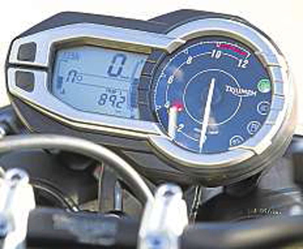 While I can’t vouch for the Tiger 800’s occasional off-road abilities, I can say how good it is on the Tarmac. Clearly designed as an adventurous milemuncher, the Tiger has a defined onroad feel, is easy to ride, handles well and is undoubtedly strong competition to the BMW’s 800cc, twin-cylinder F650GS, which has, up until now, set the bar for bikes of this nature. In my opinion, the Tiger’s definitely the more comfortable of the two machines and feelsmore capable.However, the Tiger is slightly less economical than theGS, but you should easily get 200 plus miles from the 19-litre Tiger’s tank, which, compared to the BMW’s 16-litre capacity, will be better for touring purposes.
