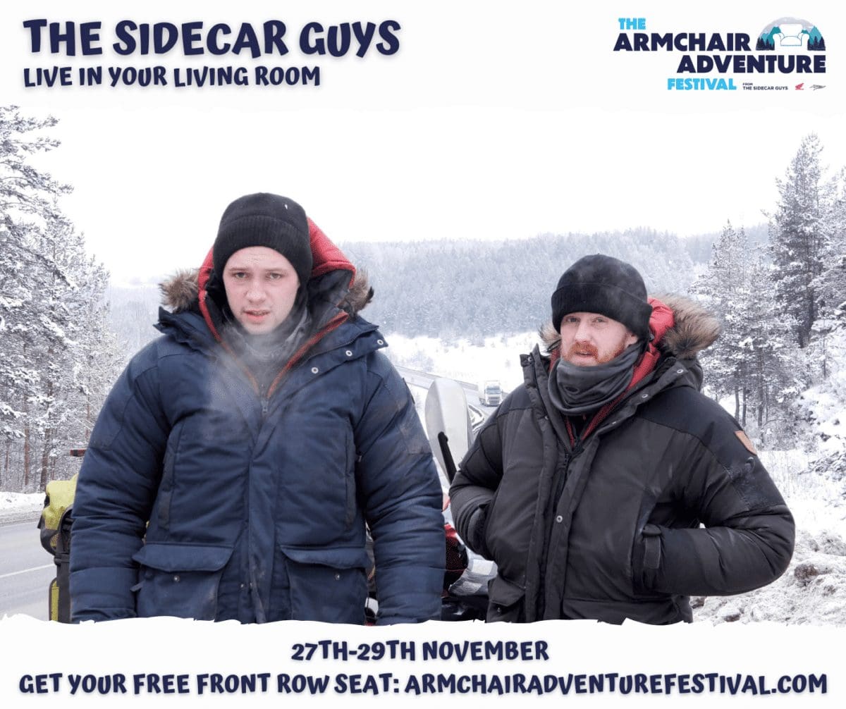 The festival is brought to you by The Sidecar Guys, a duo who circumnavigated the globe on a scooter and sidecar from 2017 – 2019 and broke the Guinness World Record for longest ride on such a vehicle.