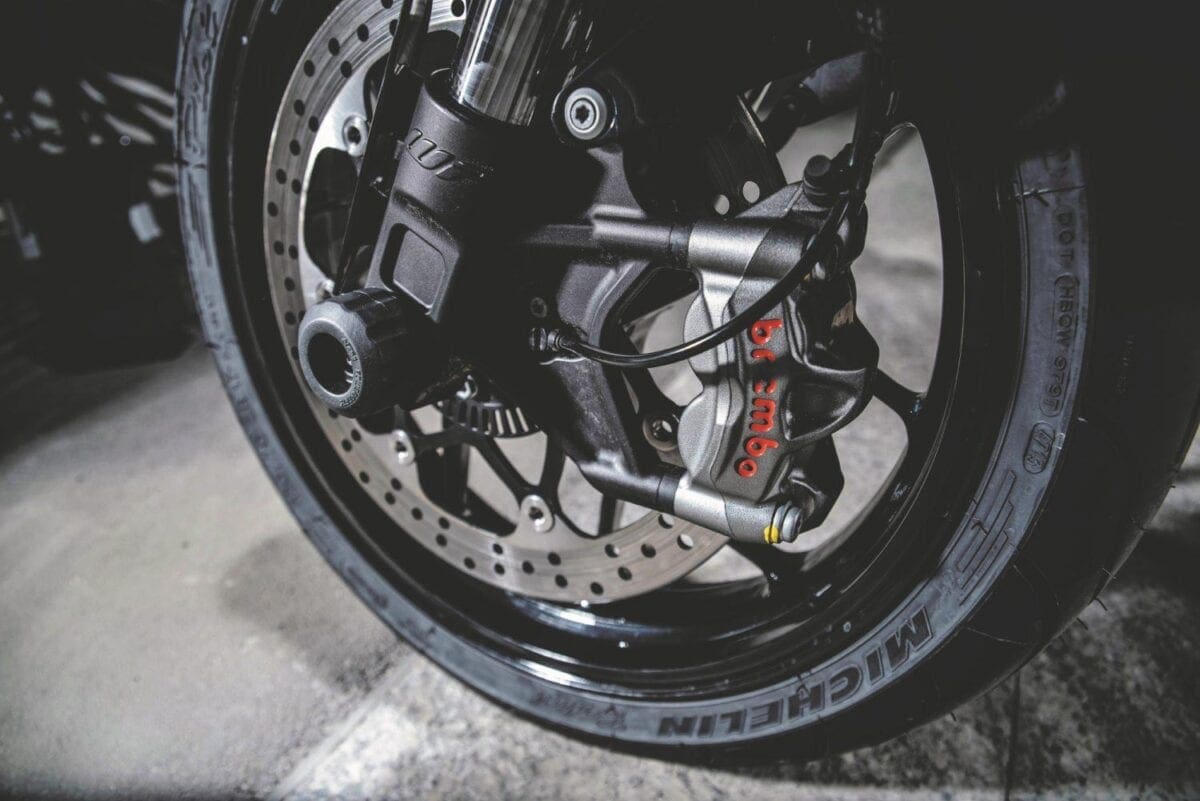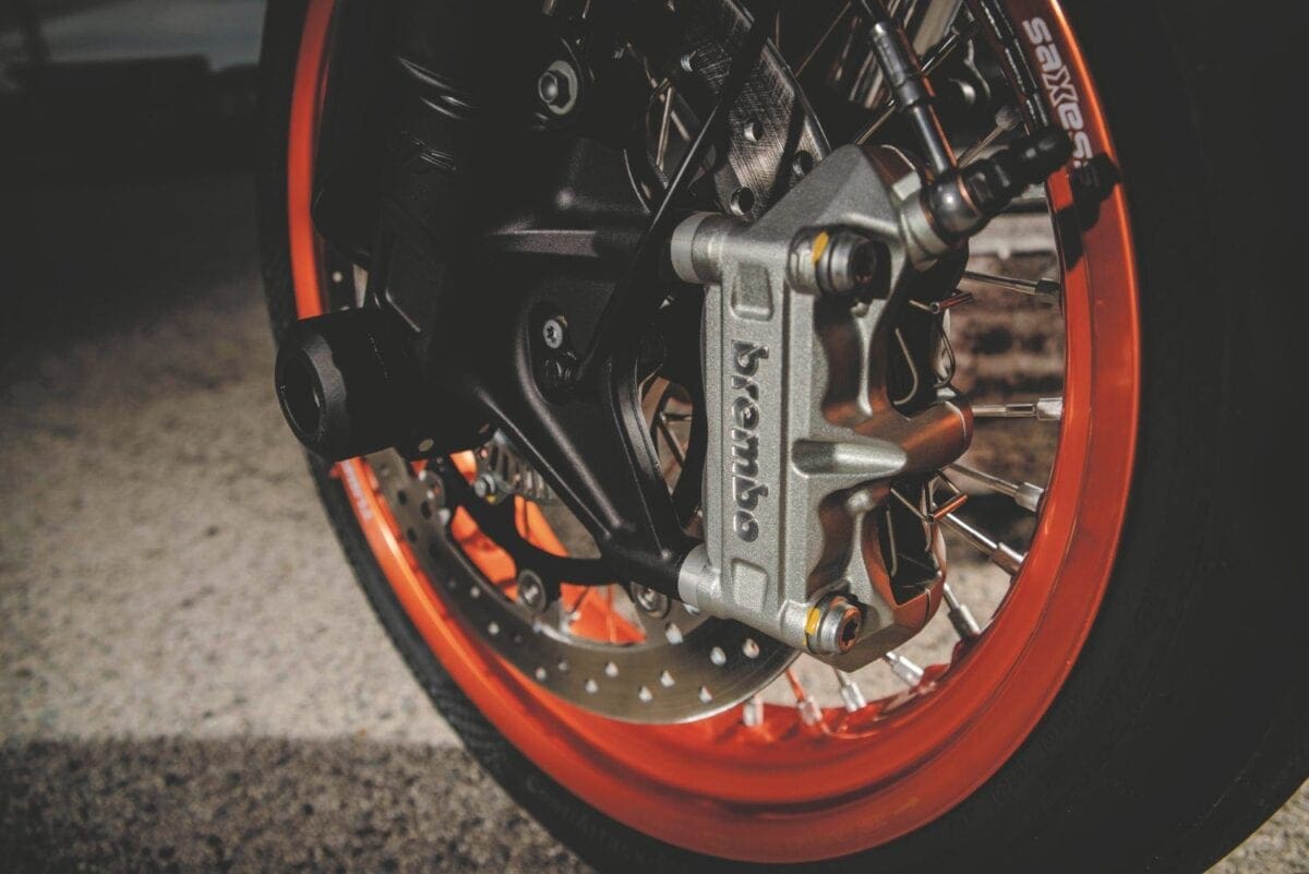 The SMC R is also tall and light but its forks have “only” 215mm of travel, its wheels are fat-tyred 17-inchers, and its front brake combines a big 320mm disc with a four-piston radial Brembo caliper.