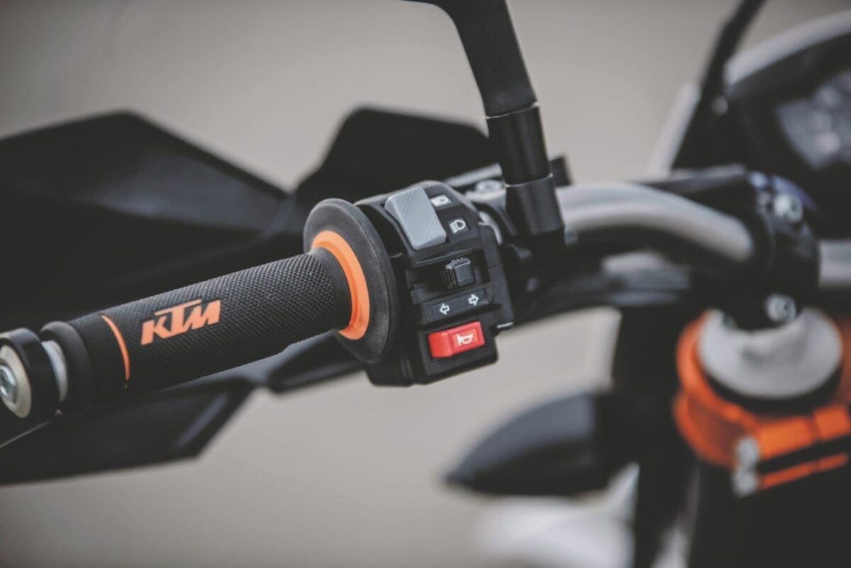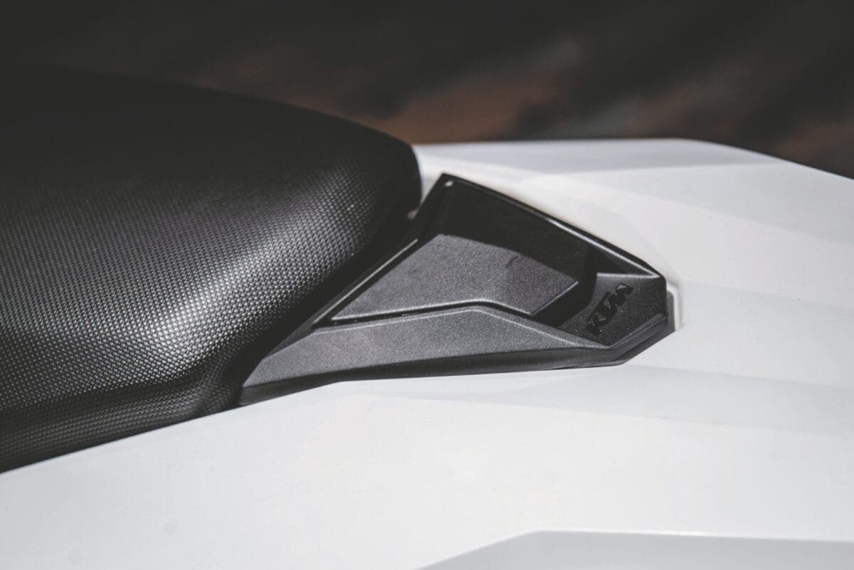 Maximum output of both the updated models is 67bhp at 7500rpm, slightly down on the Duke’s figure due to a smaller airbox. The revised engine’s main practical advantage is smoother power delivery. The ride-by-wire system allows a choice of three main riding modes, called Standard, Sport and Comfort, plus a Bad Fuel mode. Not that most riders will bother switching mode for normal riding, because it requires fiddling around under the seat rather than pressing a button on the handlebar.