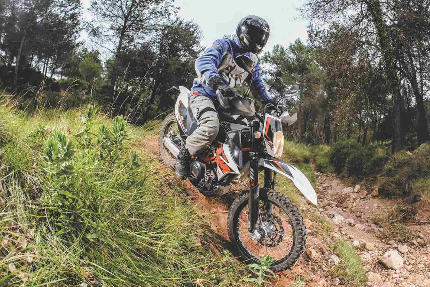 The Enduro R was much more at home when we turned off the road onto on a rutted, boulder-strewn trail. Its abundance of well-controlled suspension travel was invaluable as the light and agile KTM picked its way sure-footedly along tracks that would have been difficult if not impossible on many dual-purpose bikes. The off-road ABS worked well too, occasionally cutting in on the front wheel when I’m not sure it was needed, but working reliably and helping make the Enduro R as rider-friendly a bike for less experienced off-roaders as it is a serious tool for experts.
