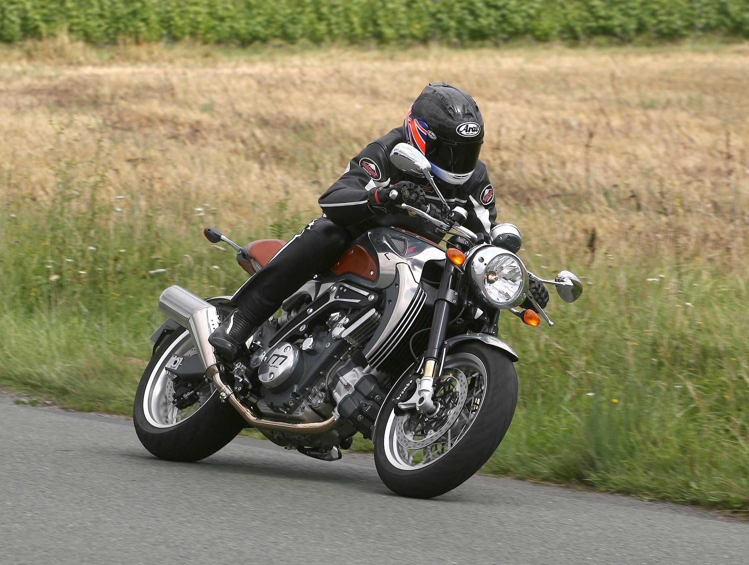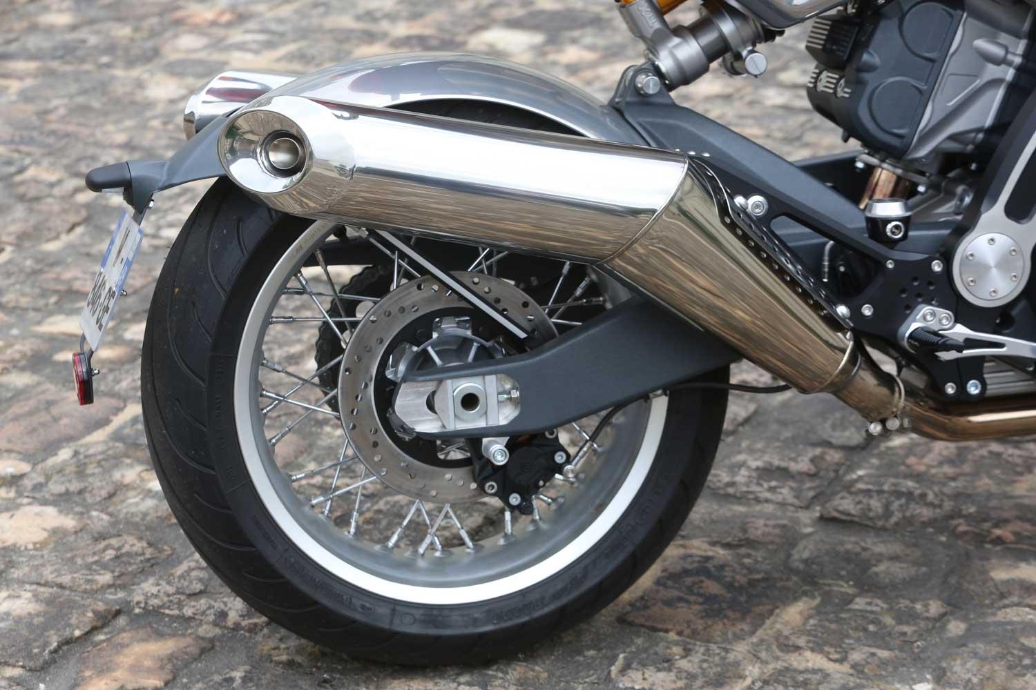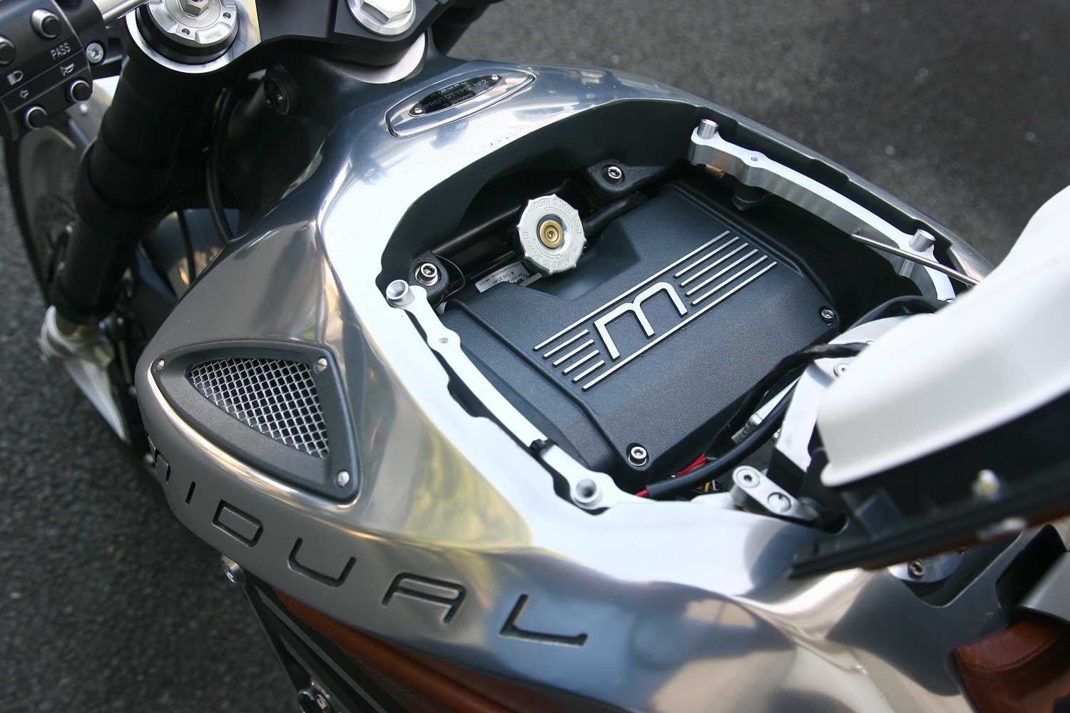 It has a completely unique engine character, with absolutely no vibration down low and in midrange, while the unique exhaust note takes care of stirring the senses. It builds power smoothly yet strongly and not far from the 1300rpm idle speed, allowing you to cut down on gear-changing – you can ride through town at 30 mph in top gear, and the Midual will pull away smoothly with zero transmission snatch when you wind it open. The broad spread of torque makes this an enjoyable and satisfying real world ride, plus the Walbro ECU is well mapped, with no snatch off a closed throttle.