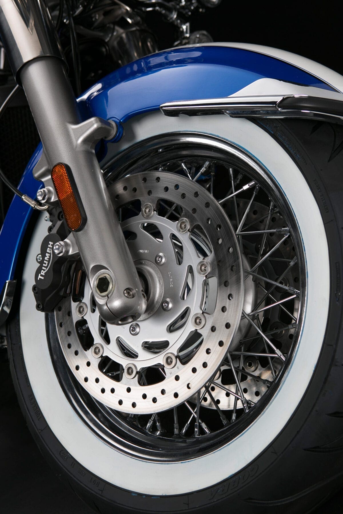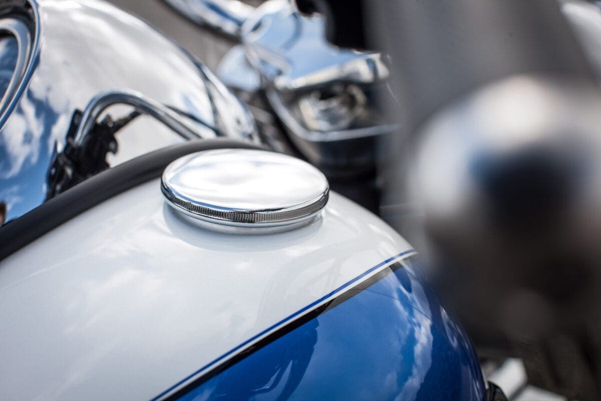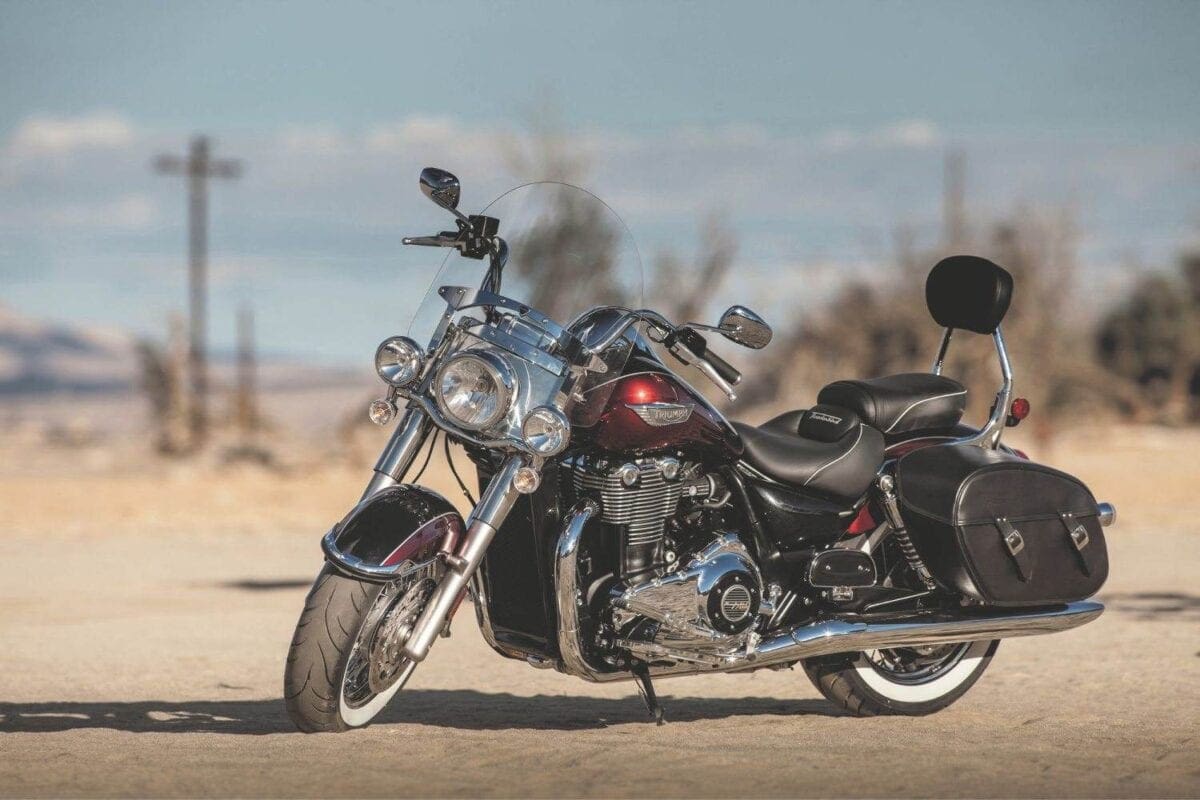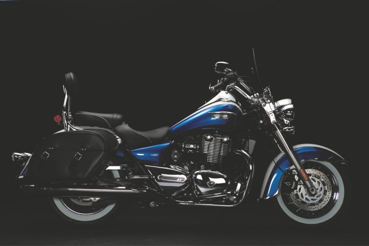 Triumph showed their commitment to the chassis when, after discovering that no tyre firm made white-wall radials, they teamed up with Avon to develop some fat 16-inchers that complement the twin’s thick two-tone paintwork very nicely.