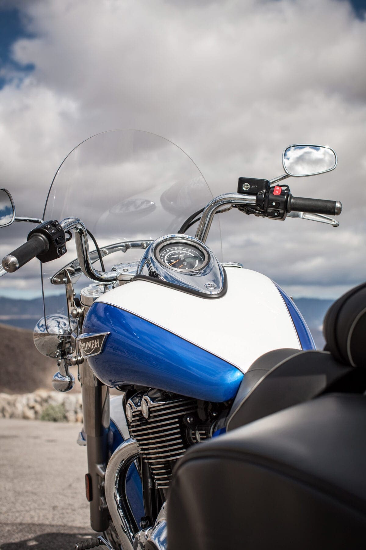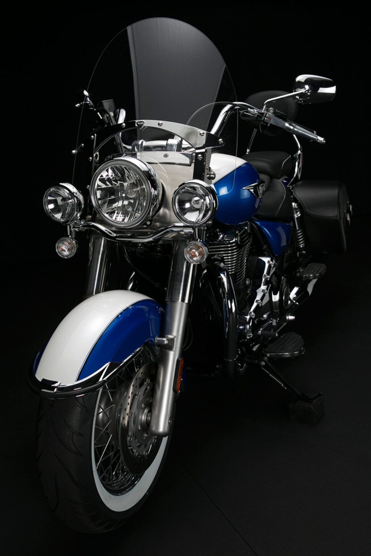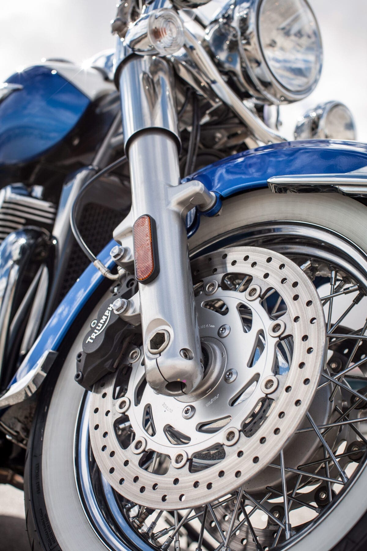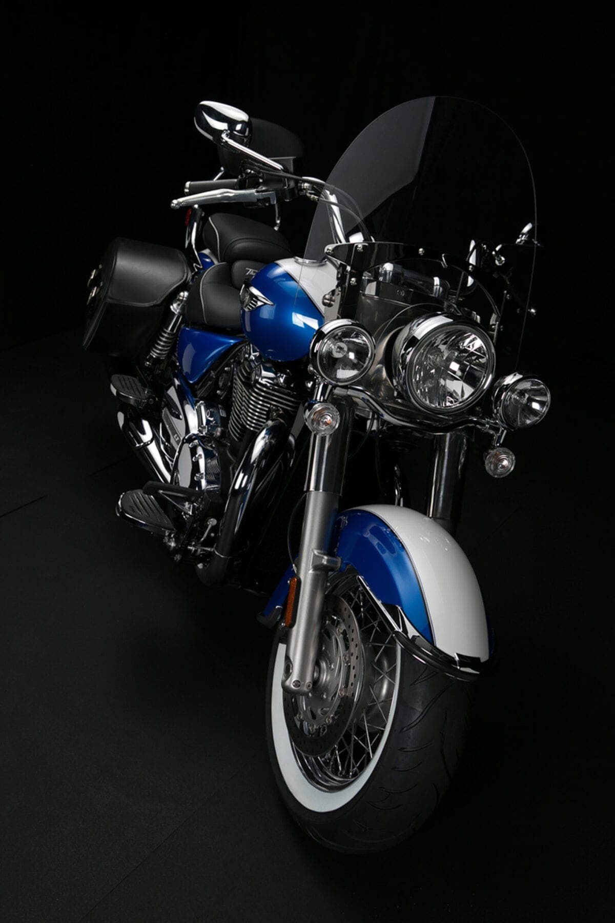 Triumph showed their commitment to the chassis when, after discovering that no tyre firm made white-wall radials, they teamed up with Avon to develop some fat 16-inchers that complement the twin’s thick two-tone paintwork very nicely.