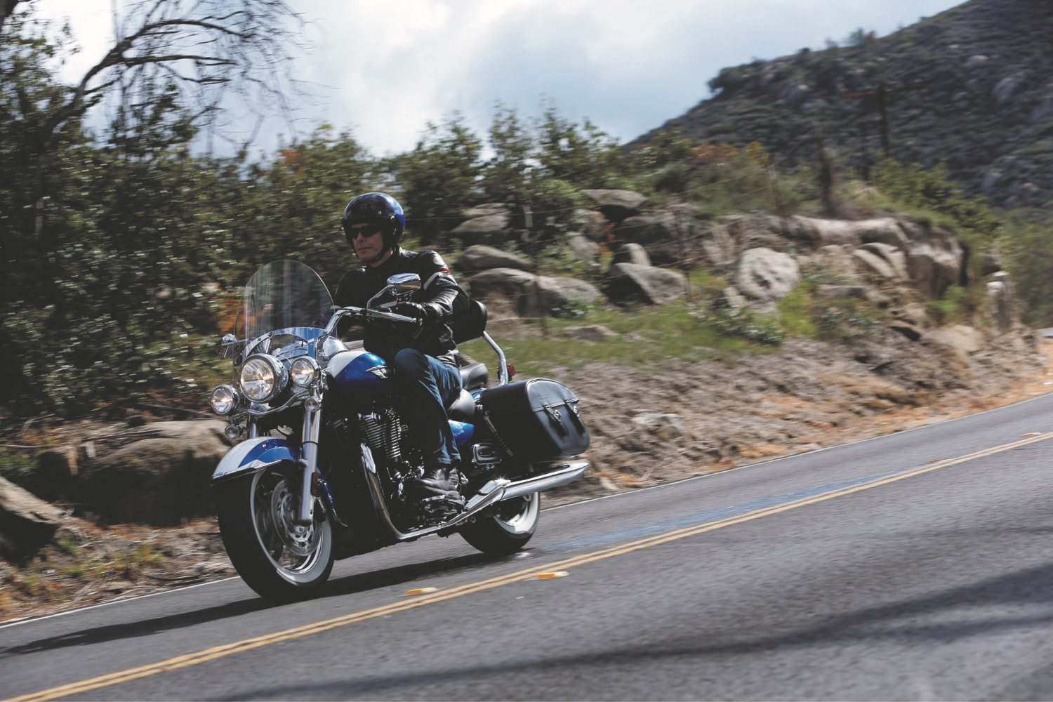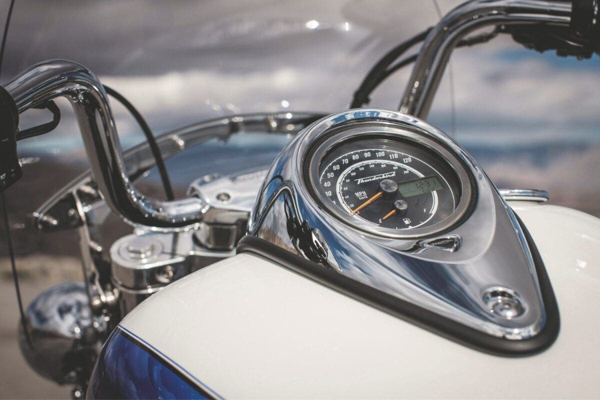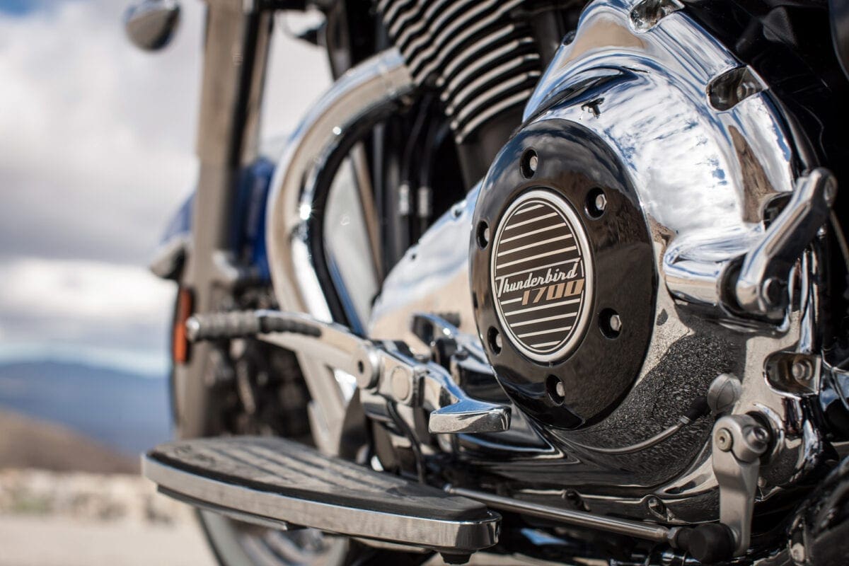 That 1699cc, liquid-cooled motor comes from the Thunderbird Storm. It has a DOHC, eight-valve layout and is mechanically unaltered, although injection and exhaust changes lose a few horsepower to leave a maximum of 93bhp. The benefit is an even flatter torque curve that reaches its very healthy peak of 151Nm at just 3400rpm.