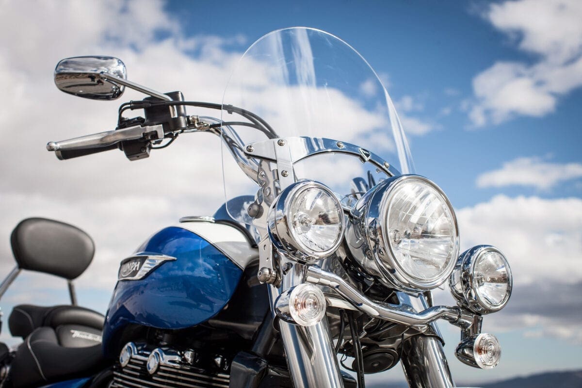 Straight-line performance was very adequate for a US style tourer. The Triumph sat effortlessly at an indicated 70mph, feeling very relaxed with the help of its smoothness and tall gearing. When occasionally requested, it pulled respectably urgently from there on the way to a top speed of about 120mph. It also felt quite involving, perhaps partly due to that exhaust note, which is distinctly throatier, if not an actual Harley-style potato-potato soundtrack.