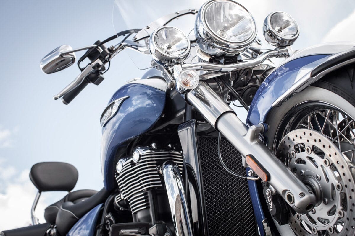 Most of Triumph’s development effort went into the chassis, and was aimed at improving comfort while retaining the marque’s reputation for handling. A typical cruiser flaw is that the demand for a low seat tends to lead to short-travel rear suspension, which in turn requires stiff springs — and often generates a spine-crushingly harsh ride.