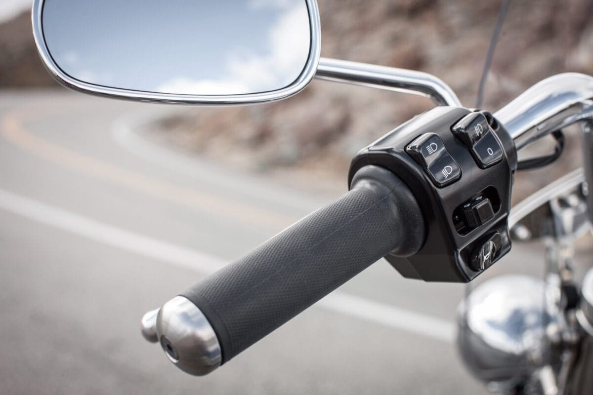 Handling was very respectable, blending rock-solid stability with light, neutral steering. On the twisty roads east of Julian the LT was easy to corner despite its length and weight. Those white-wall Avons felt reassuring although they didn’t really have much work to do because on dry roads the footboards scraped long before the rubber approached its grip limits. Owners probably won’t mind generating a few sparks, especially as the boards’ lowers are replaceable, but some riders grounded out hard enough to run worryingly wide in turns.