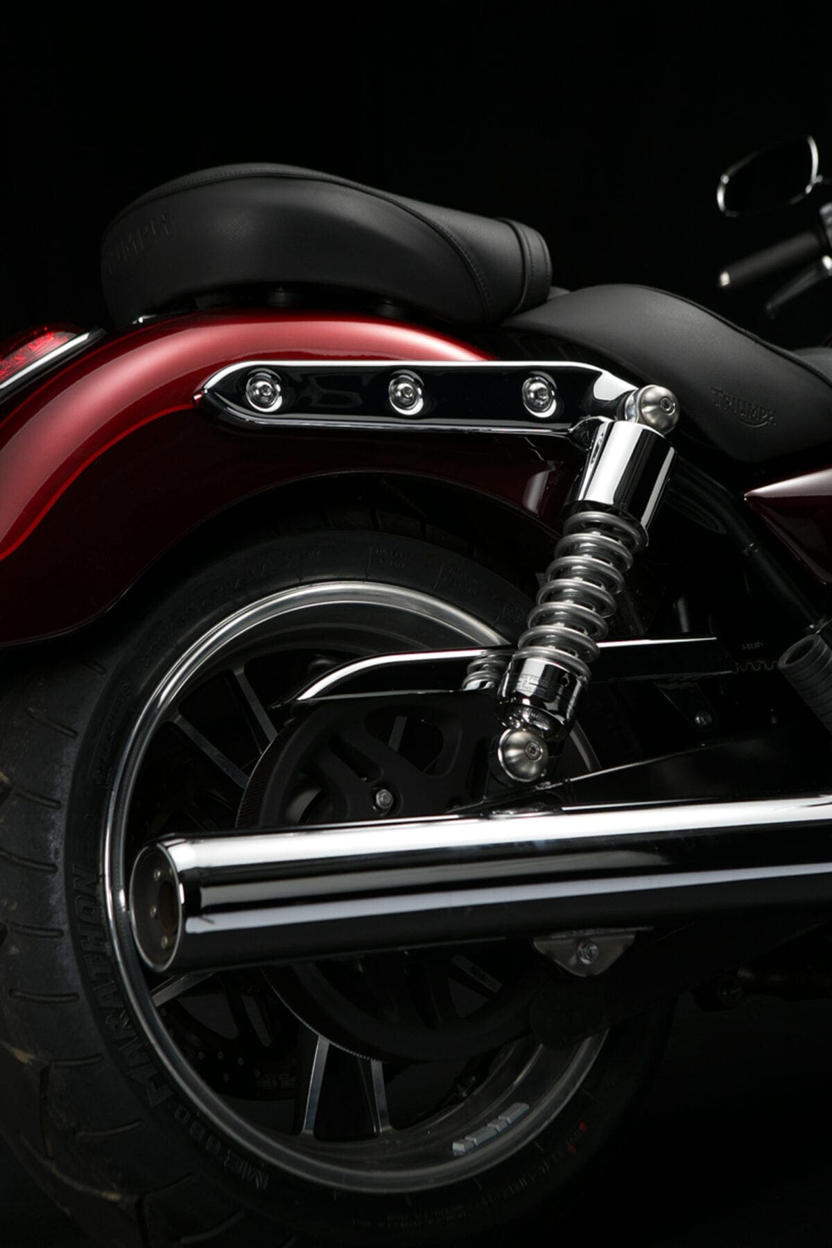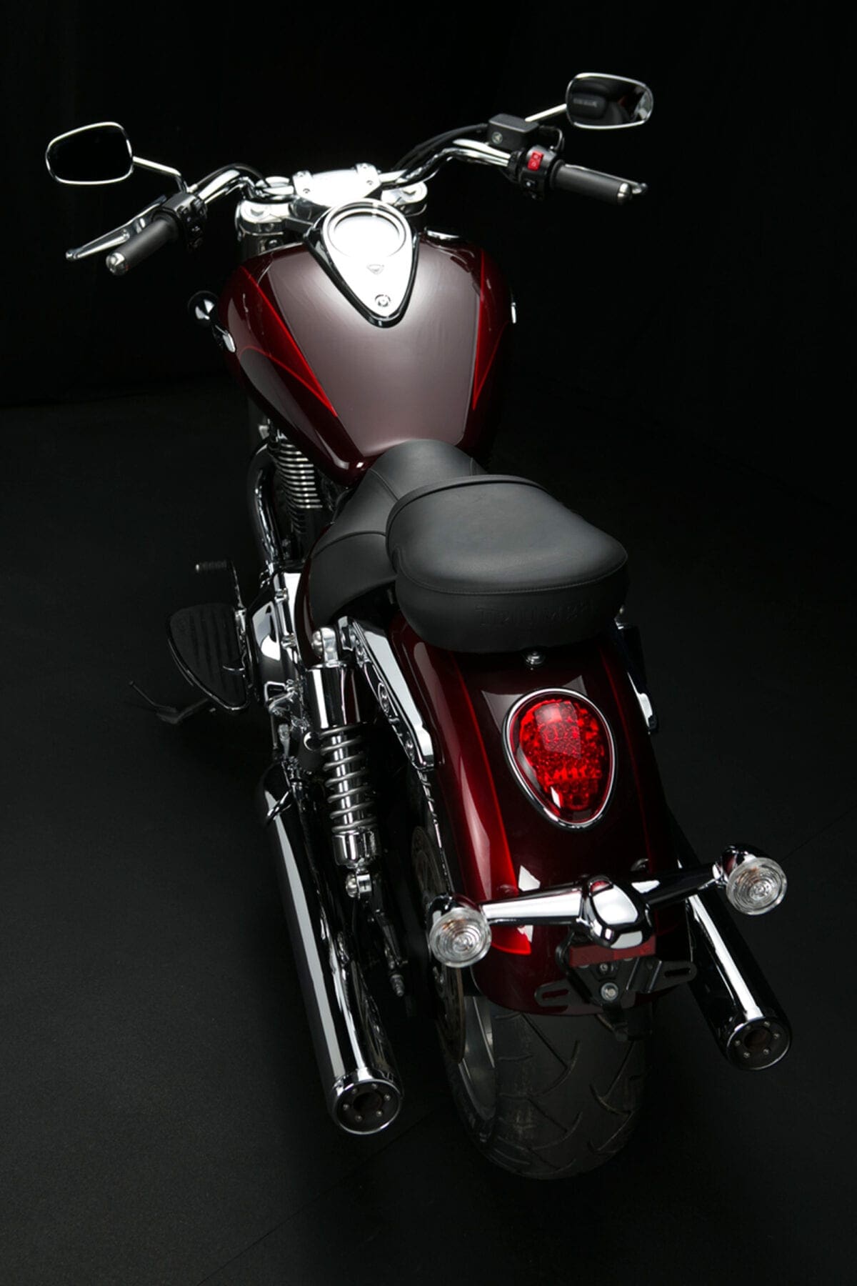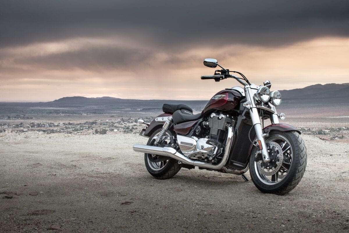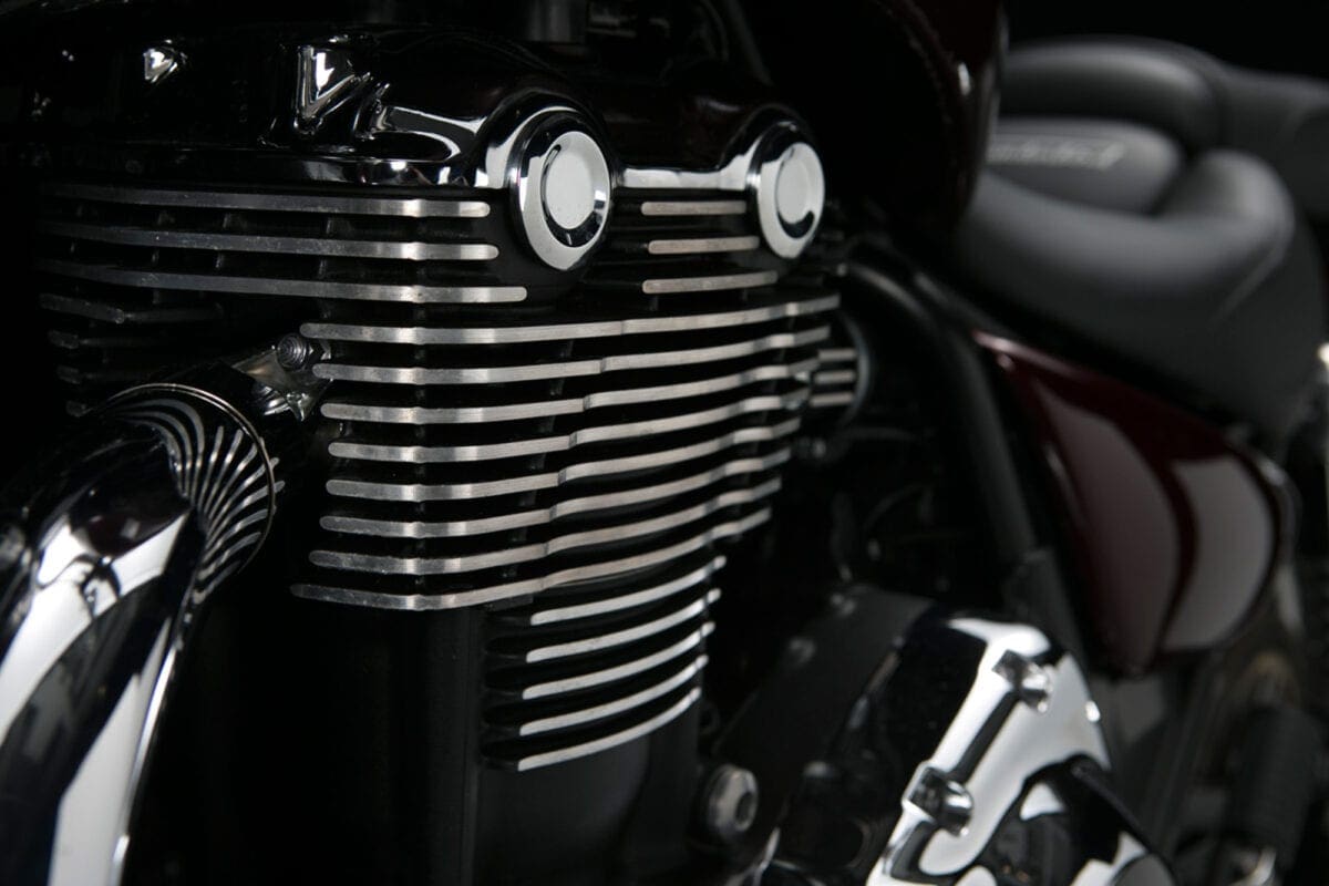 If you just glance at the T-bird Commander’s shape and shiny twin-headlight grin, there doesn’t seem to be much difference between this latest mean-and-moody parallel twin and the Thunderbird Storm with which Triumph gave its cruiser line an extra dollop of menace back in 2011. Dig deeper though, and the Commander is very different – much more like the LT with which it shares the majority of both engine and chassis components. That 1699cc parallel twin engine is common to all three models, but the airbox and exhaust system that detune it slightly to a max of 93bhp, while adding a bit more noise, are like those of the LT. The Commander also shares the Light Tourer’s chassis with its revamped frame, dual-rate shock springs and thicker seat.