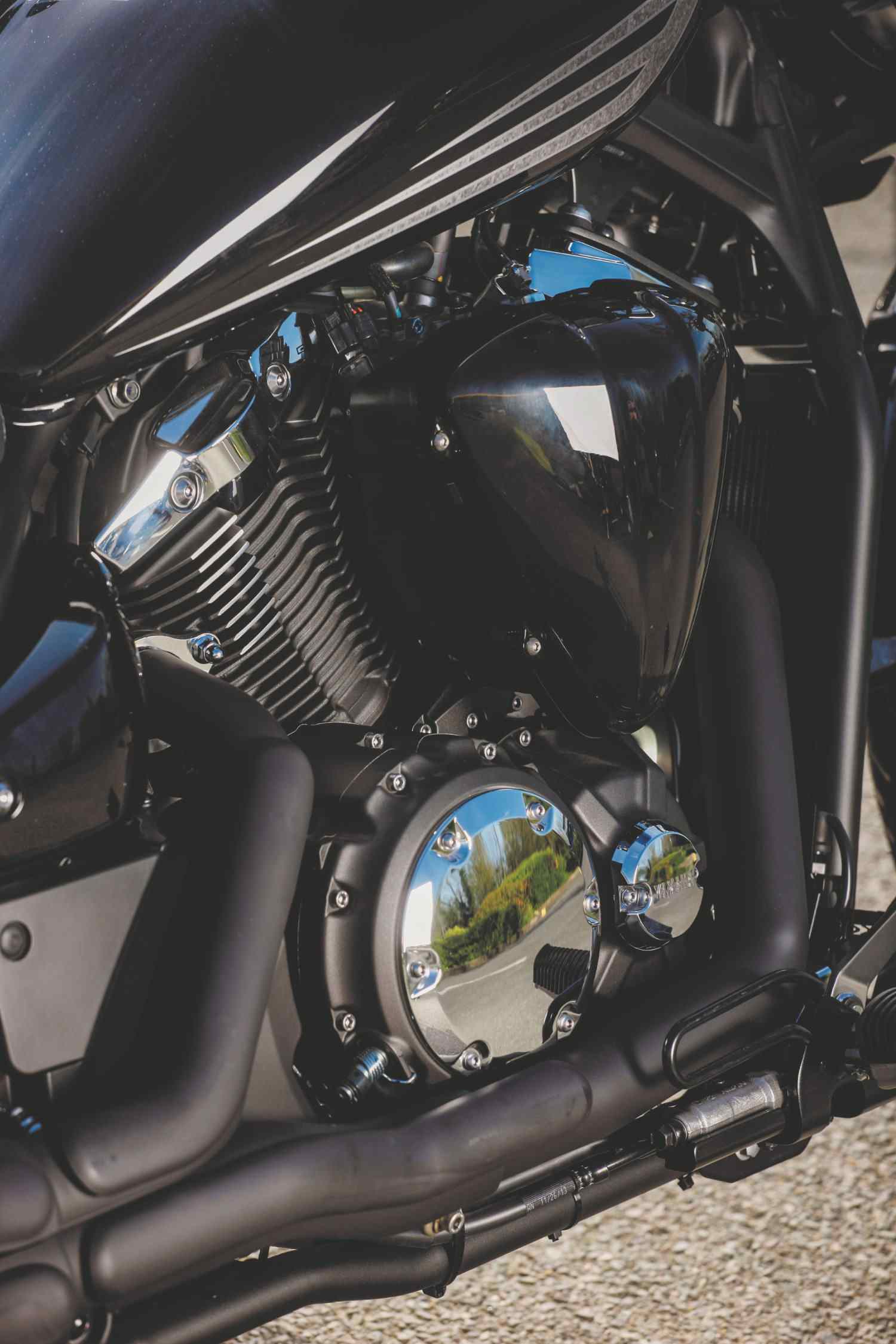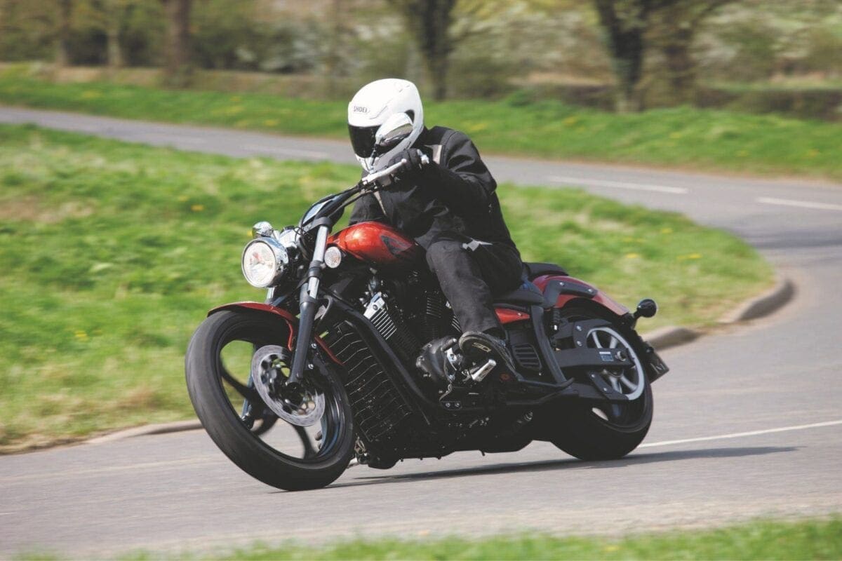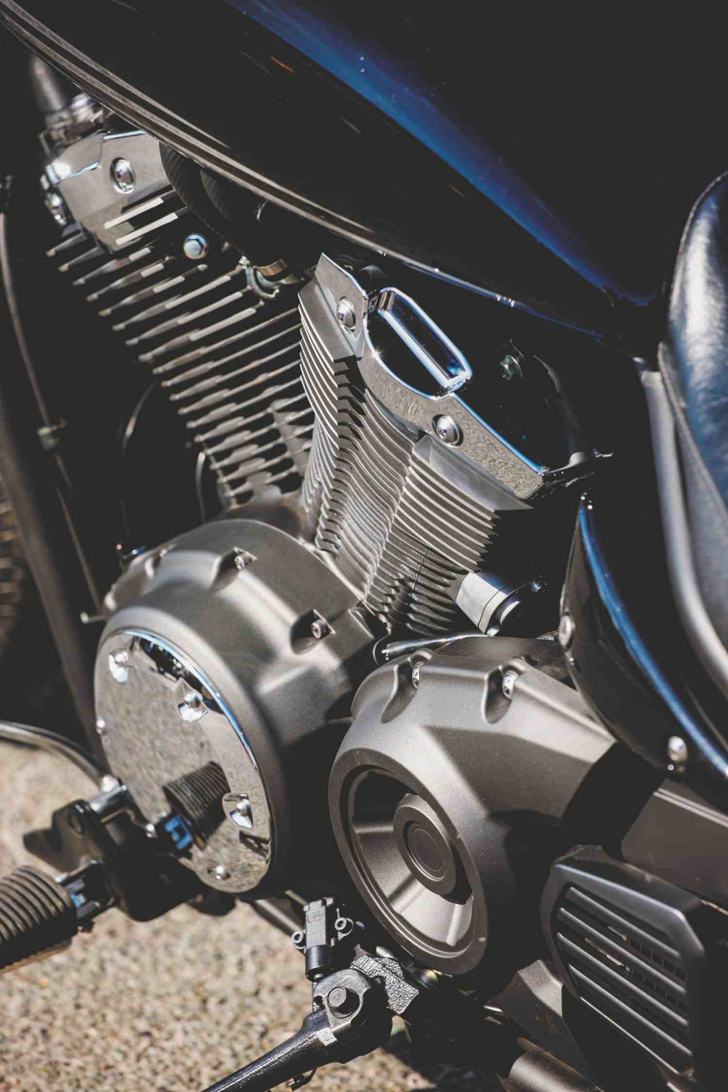 It’s got a relatively short piston stroke for a cruiser motor, which helps it rev slightly faster and be less lumpy at town speeds. It all helps deliver smooth power from almost zero revs, and no chugging should you accidentally leave it in too high a gear. The gearbox is slick (for a big v-twin) with a light clutch and well-chosen gear ratios giving reasonable acceleration, and easy cruising at the national limit (and above – the XVS tops out somewhere just above 100mph, so they tell me).