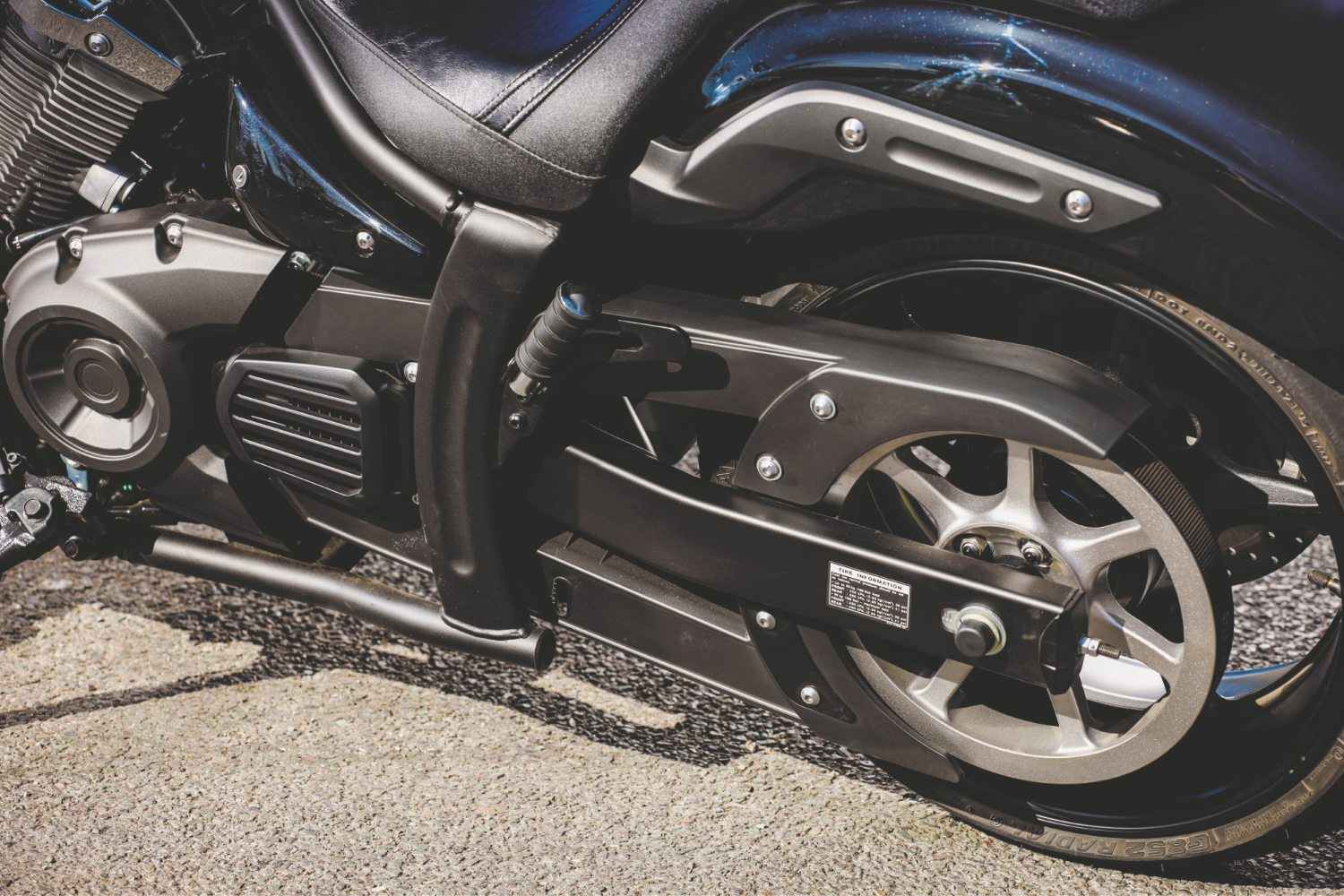 _C8_7884Most cruisers rely on fat, balloon tyres to complement the crude suspension, but the XVS can run modern, grippy, low profile radial rubber because the suspension is so versatile.