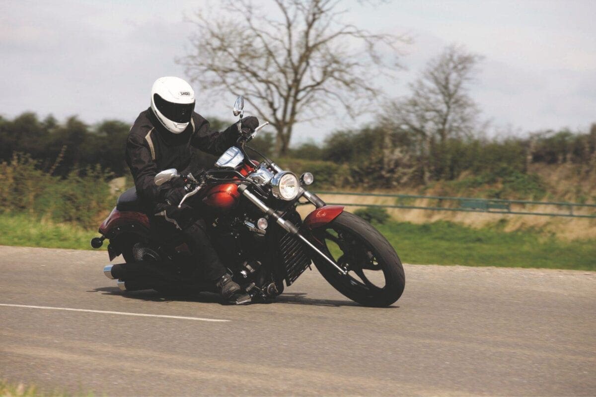 Handling, as mentioned before, is surprisingly good. The XVS steers easily without flopping into corners and holds a line through turns without fuss. Ground clearance is adequate and should you touch something down, the footpegs are hinged and so no damage is done.