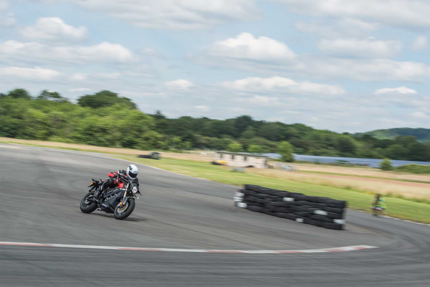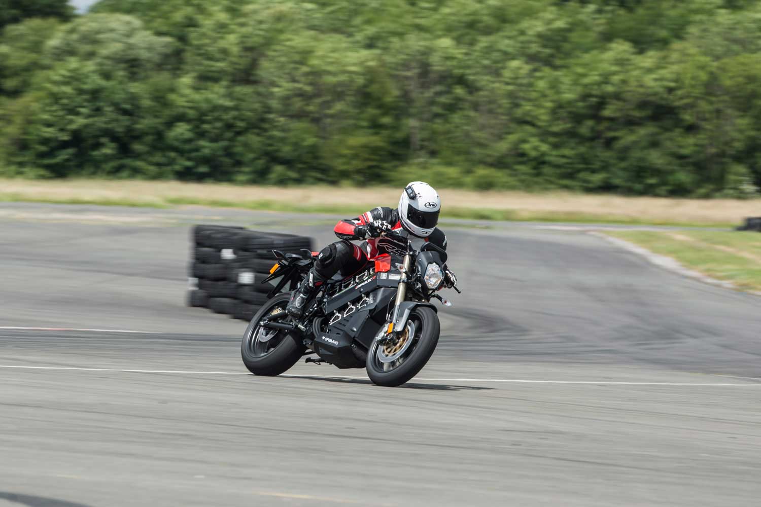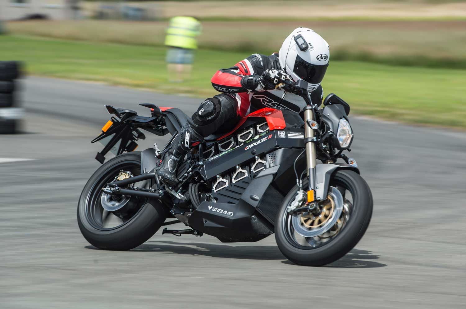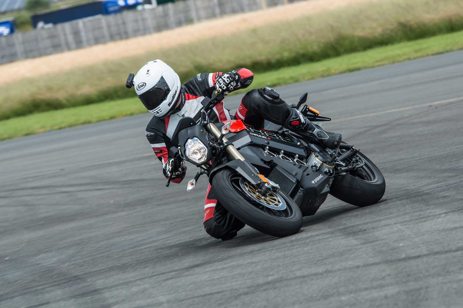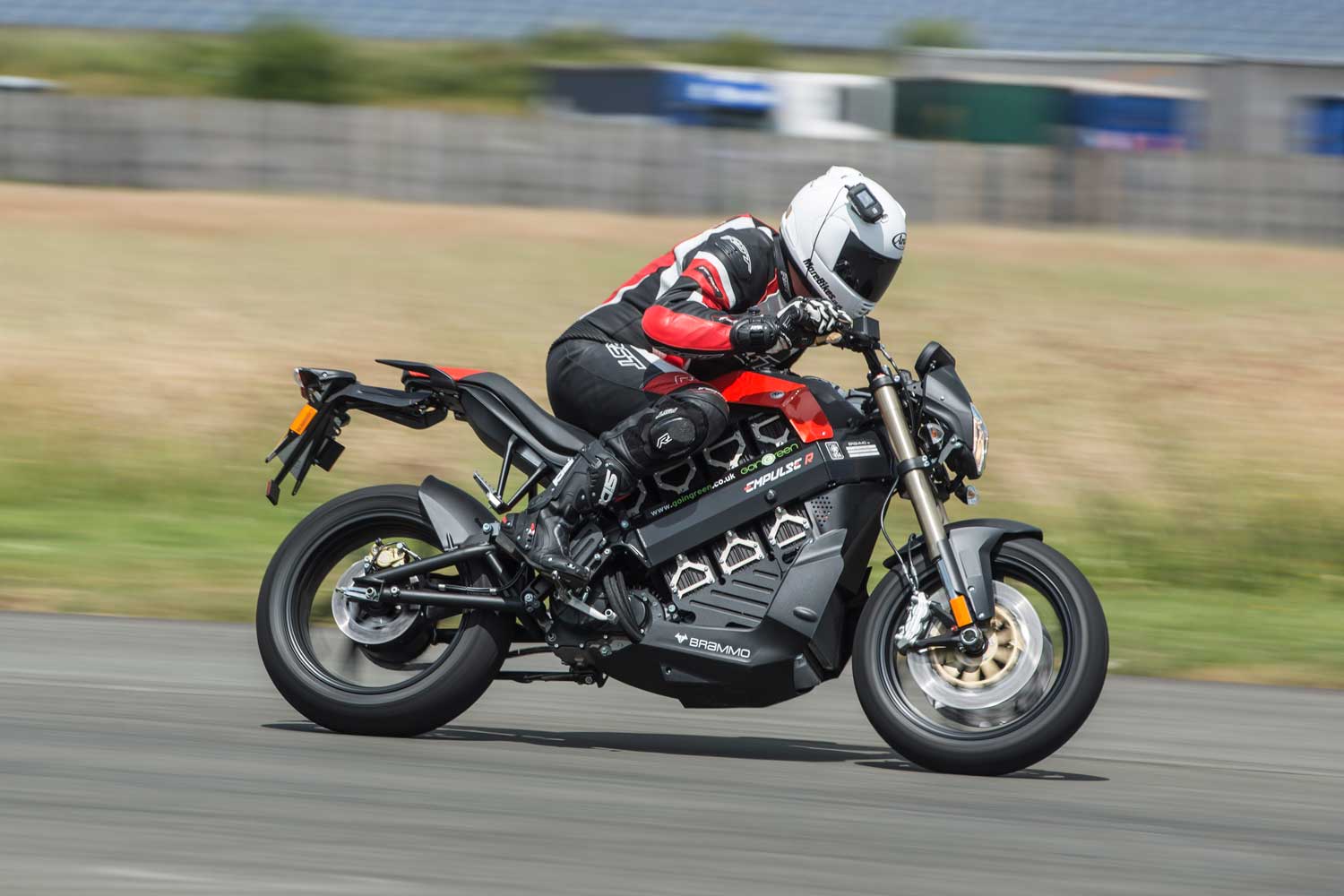 Brammo Empulse RTesting the bike at the Dunsfold ‘Top Gear’ test track, I’ve never felt so confident on a motorcycle in such a short time. The incredibly smooth throttle makes it easy to wind on the power, and within three corners I had my knee down.