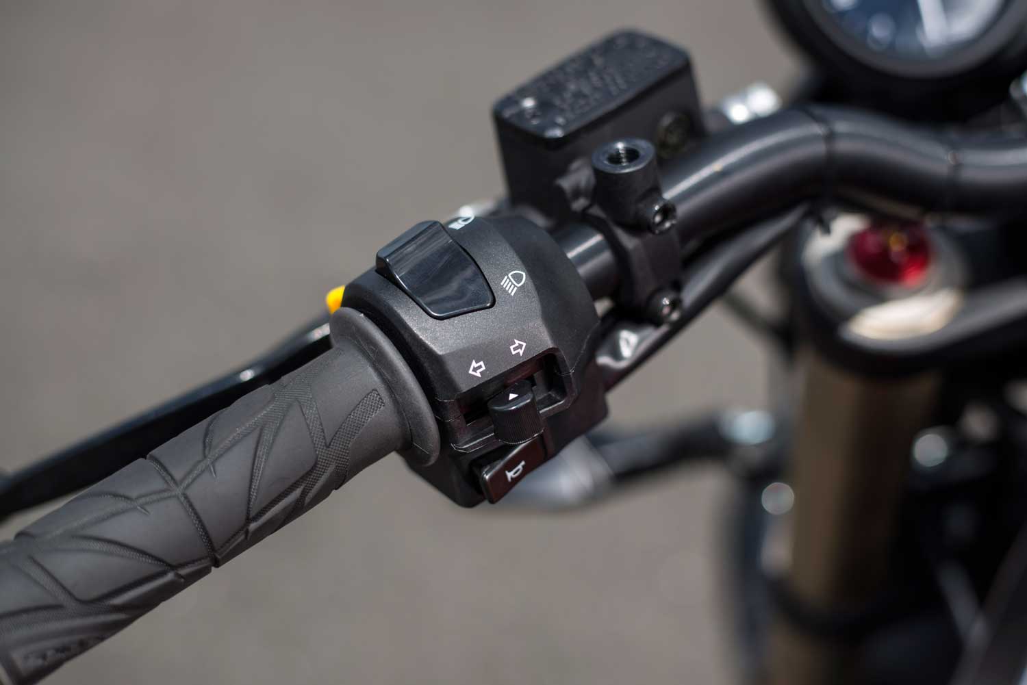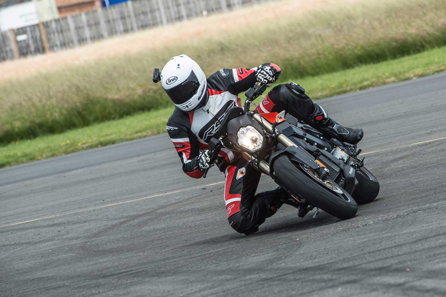 The riding position is perfect for commuting: easy to flick about but still very comfortable, with a relaxed position to the pegs. If you push the bike harder, the rear brake lever can touch down (according to my Pirelli Diablo Super Biker app, it was at 43.3° of lean), but it tucks away easily, and the bike is a long way from being upset.