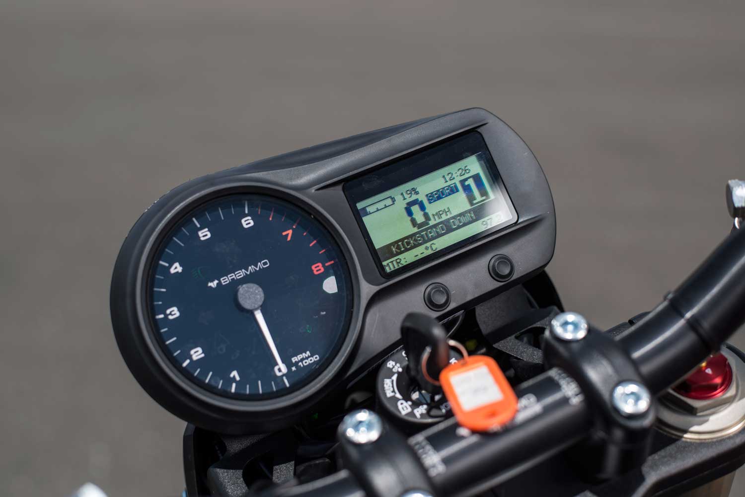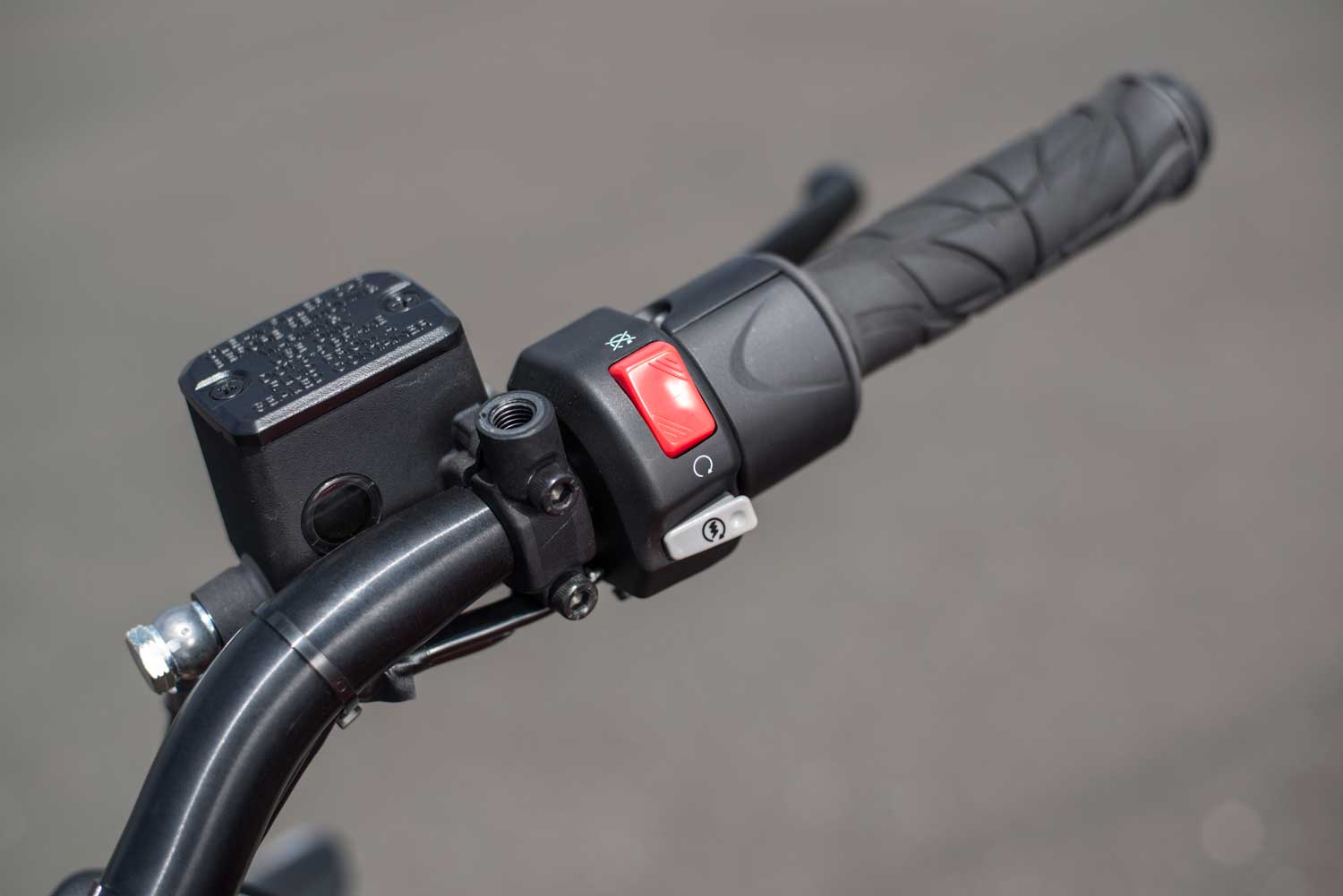 The 213kg of weight is carried well, making for a compact and nimble bike. The electronic dash has a large analogue rev-counter, with a digital display showing speed; gear position; energy consumption; battery status; estimated range and system status.