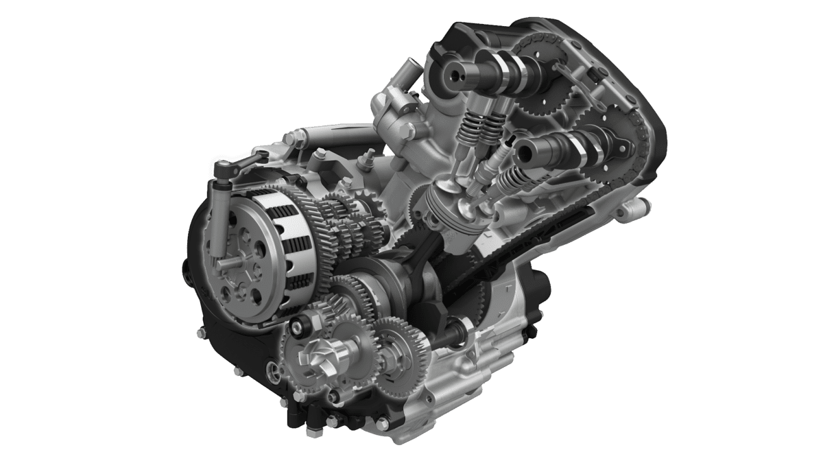- High-performance, liquid-cooled, DOHC 4-valve power unit