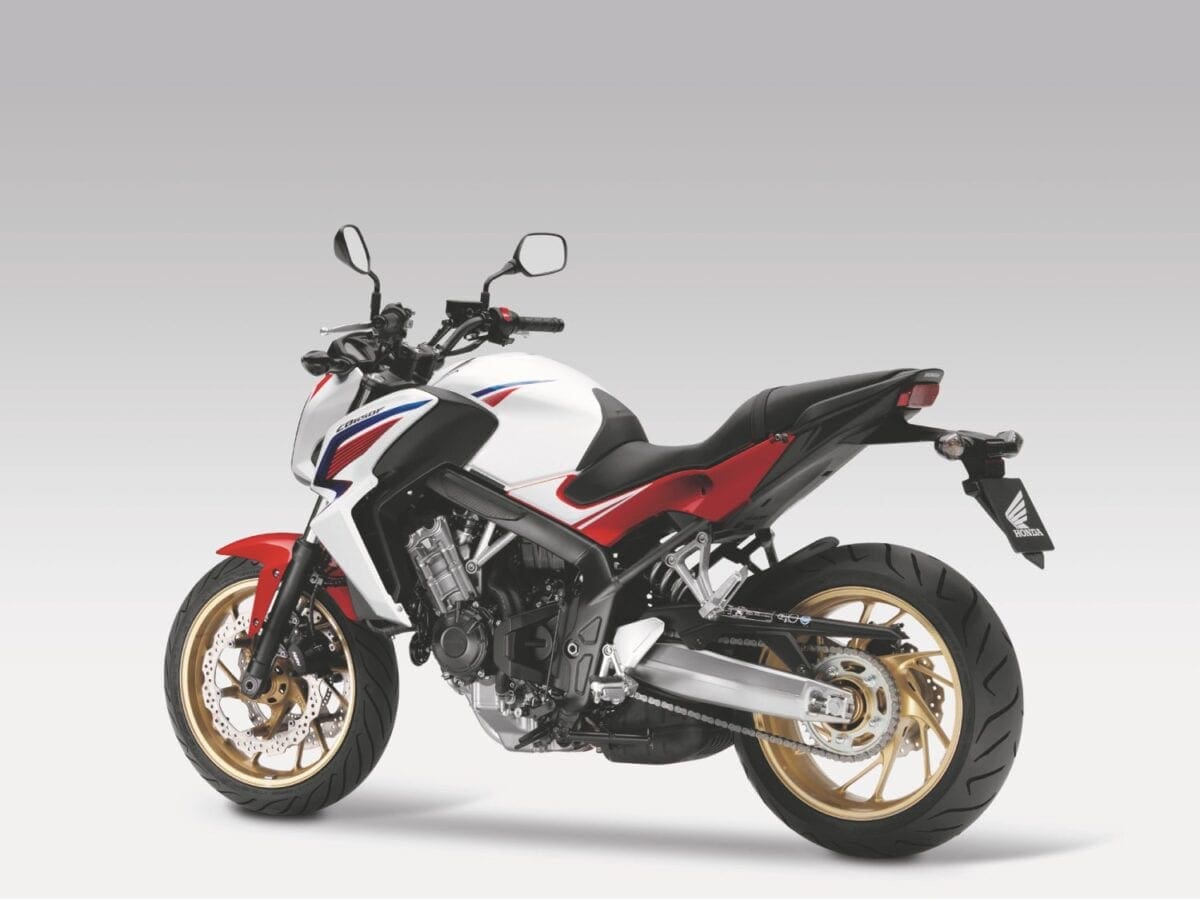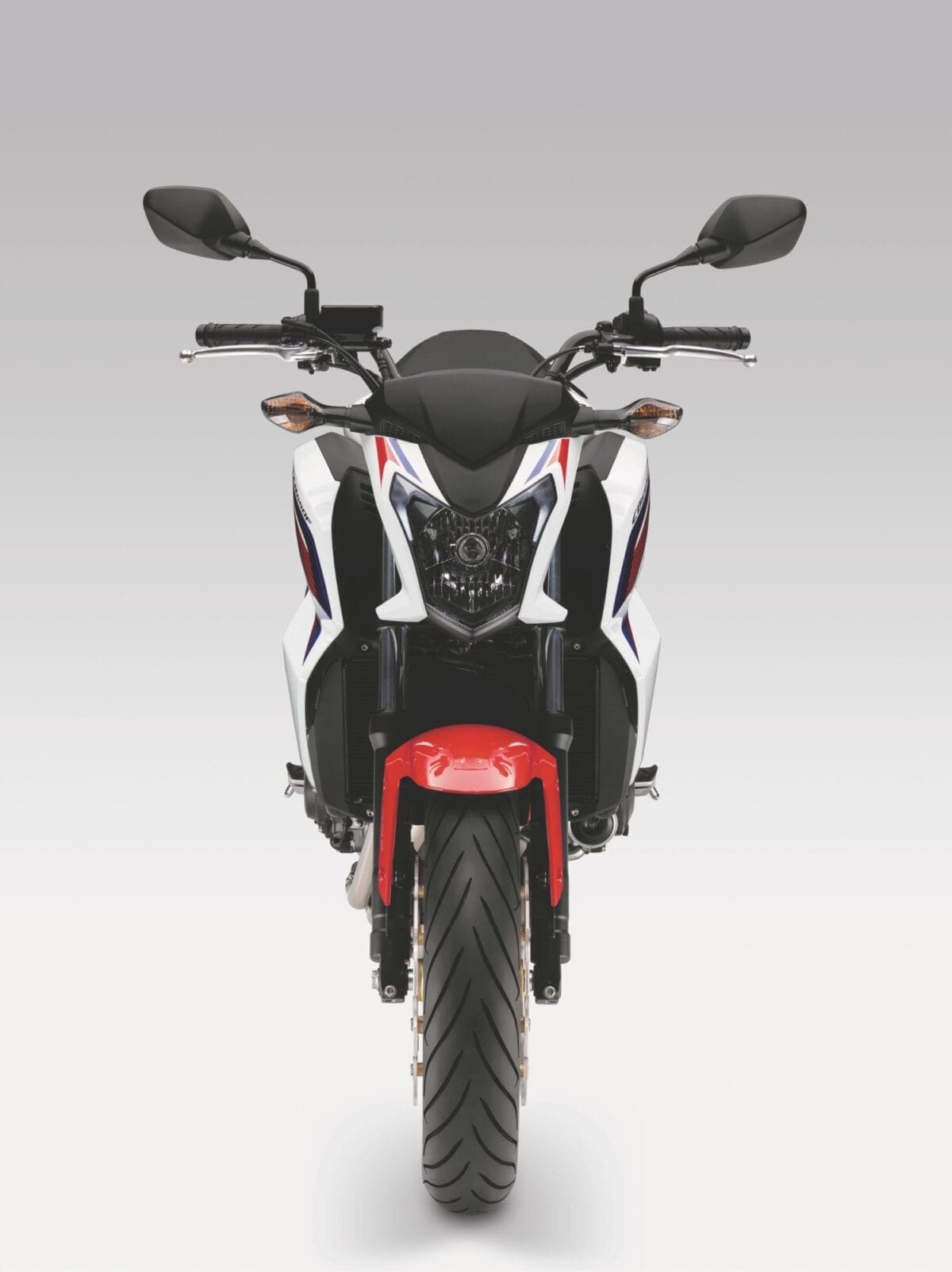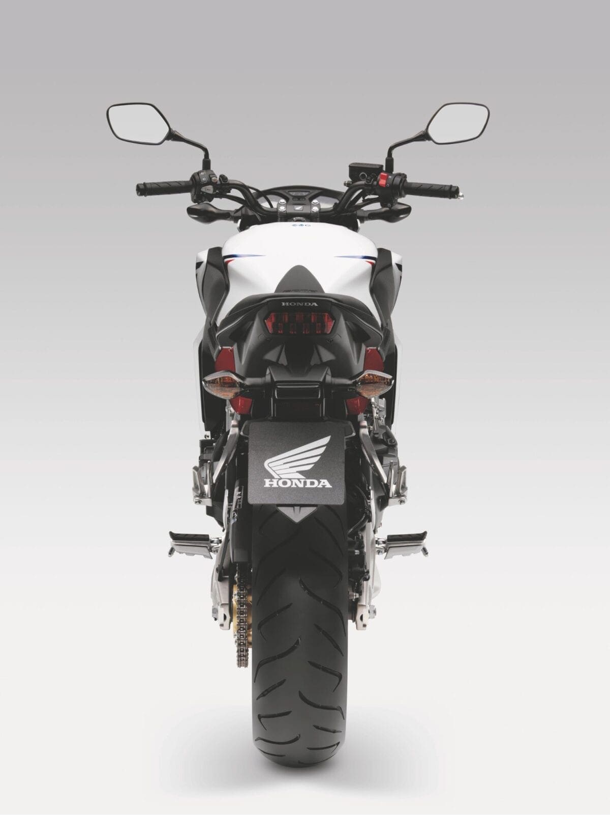It’s full of clever touches to bolster the big bike experience, including a 180-profile rear tyre, a chunky die-cast aluminium swinging arm, and substantial shoulders on the fuel tank (compliments of the induction system). There’s plenty of detail too, with the CB650F logo embossed into the plastic in many areas, even under the rear hugger – just in case you felt inclined to look. And then there’s a whole load of carbon-look panels too.