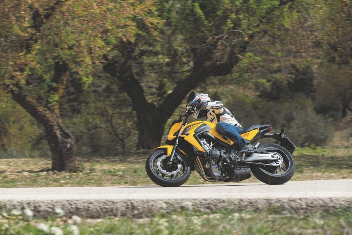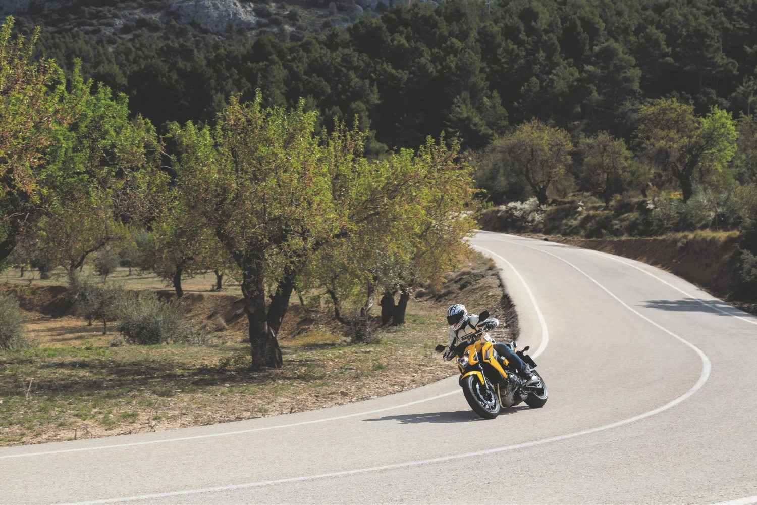 I rode the first 40 miles of our mountainous route in third, and was pleasantly surprised at the versatility and usability of the motor’s torque. It’s half decent around 2-4000rpm, though the throttle can feel a little snatchy. The later revs are where you really want to be though: After 5000rpm, the engine comes alive, and the scream from the low-mounted, stubby exhaust reinforces it.