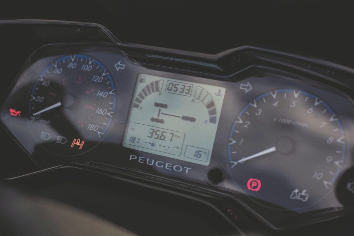 018_ClocksIf ever there was a machine striving to make motorcycling convenient, it’s the Peugeot Metropolis. As an every-day form of transport, the large boot, the keyless ignition, the automatic headlights that stay on after parking to see you home, the tyre pressure sensors, the 12V power socket and the comfortable seat make this a brilliant tool for the daily ride.