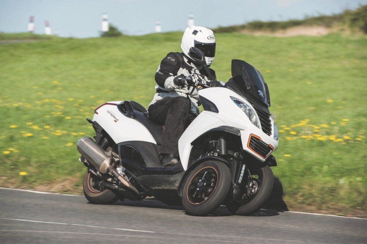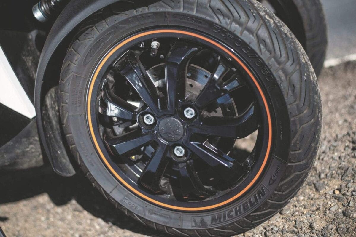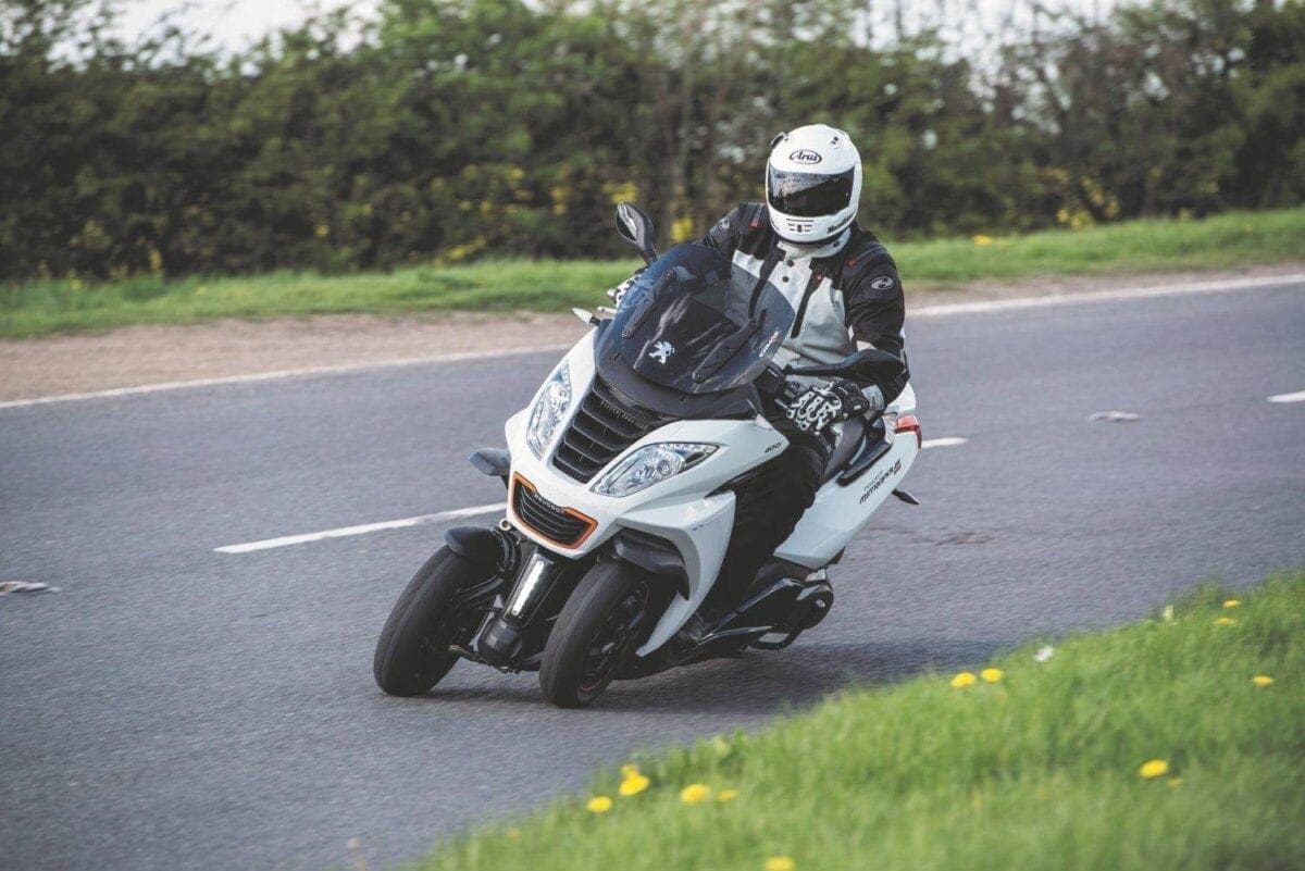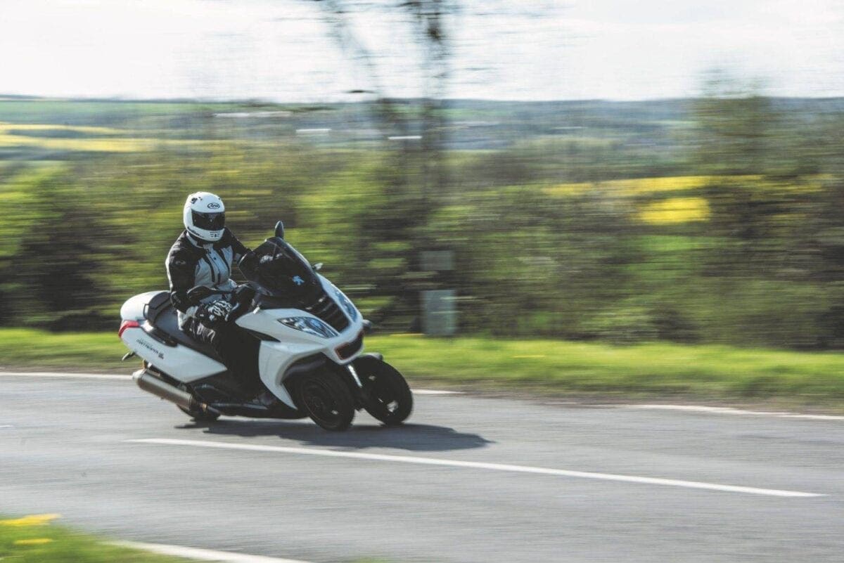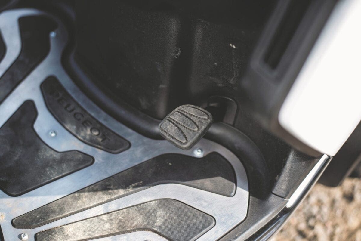 The brakes are linked, with Peugeot intending you to be able to stop with just the left lever. The right lever operates the front brakes, while the left grabs the rear and the front. This system takes some getting used to – pull one lever, and you can feel the pressure build in the other, making for rather a ‘wooden’ feel. As a motorcyclist, I’d prefer to have had a separate back brake, to drag when I felt the need, but the system should suit many users. A foot-brake is also fitted on the right of the floor board, but I never used this, and found it just got in the way of a comfortable foot position.