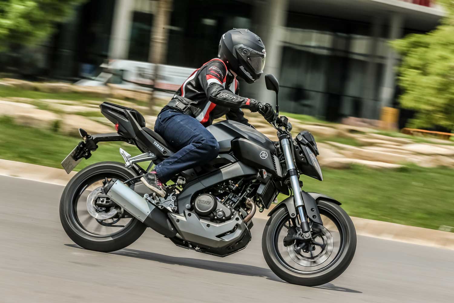 Both the MT and the 2014 YZF are developed from the 2008 YZF-R125, and feature the same engine, wheel rims, brakes and exhaust. However, sat astride the MT, it feels like a completely different machine to the new sportsbike: The handlebars are larger, and have been raised which gives a great feeling of control. The shorter tank of the MT provides a hip position that’s further forward – 42mm to be precise – and puts you right over the centre of the bike.