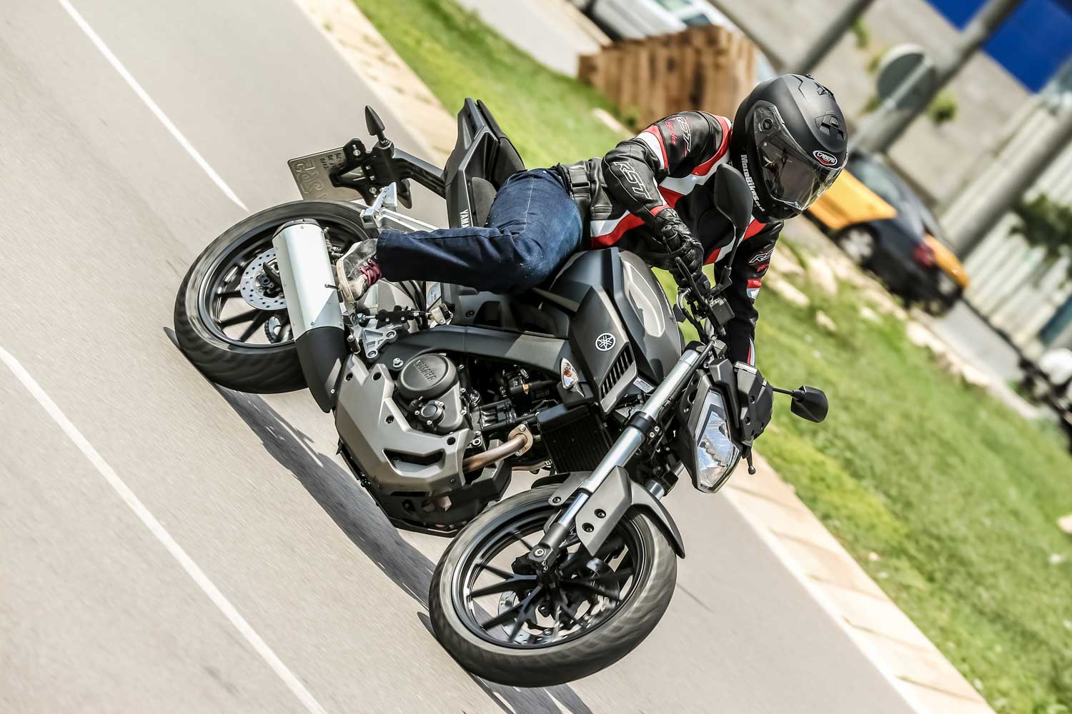 The MT’s lump is the same as the new YZF-R125: a single cylinder 4-stroke with a strong emphasis on efficiency. Despite riding all day, the fuel indicator hardly moved, and I got an incredibly impressive average of 124mpg from the machine – that’s more than some scooters! The test route took in the busy streets of Barcelona, with its hundreds of traffic lights and city commuters, as well as the twisty mountain roads. It’s got a really nice character for a 125, and packs a whole lot of attitude despite being the baby of the bunch. The six-speed gearbox is smooth and allows you to reach the national speed limit easily, making country roads a pleasure. It’s a punchy engine with power throughout the revs, and unlike a lot of 125s, you don’t always have to change down to get that lower end torque for safer overtakes.