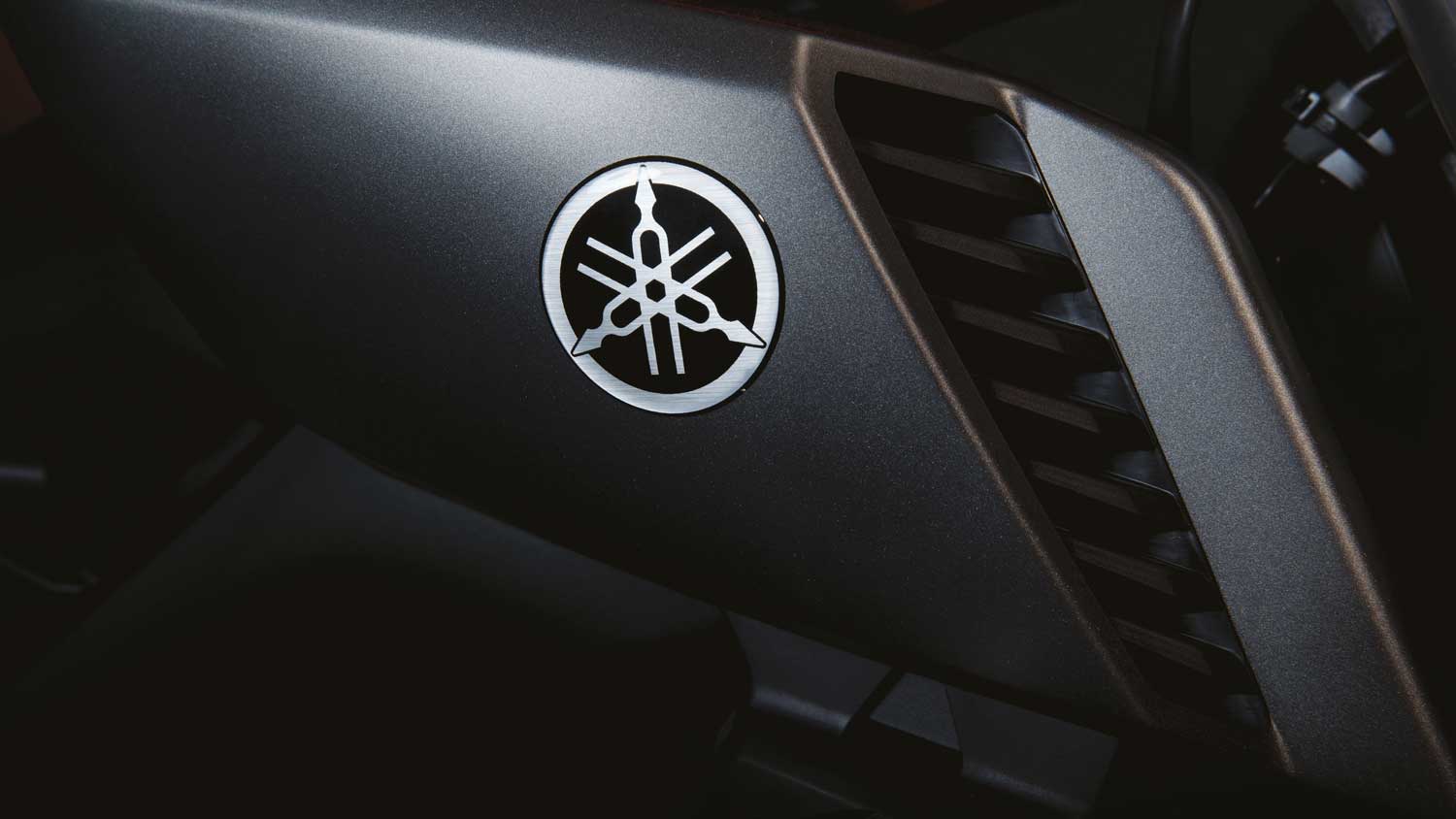 Looking down at the dash you can see all the vital information easily. Yamaha designers took inspiration from the simple layout of smart phones: Turned off the screens are black, but when you turn the key each of the three sections come to life. The centre screen shows rpm and speed, while the right hand side displays the fuel indicator, clock and odometer. The left consists of the engine temperature, maximum speed, average speed and fuel consumption data which can be switched using the button on the right hand switch gear.