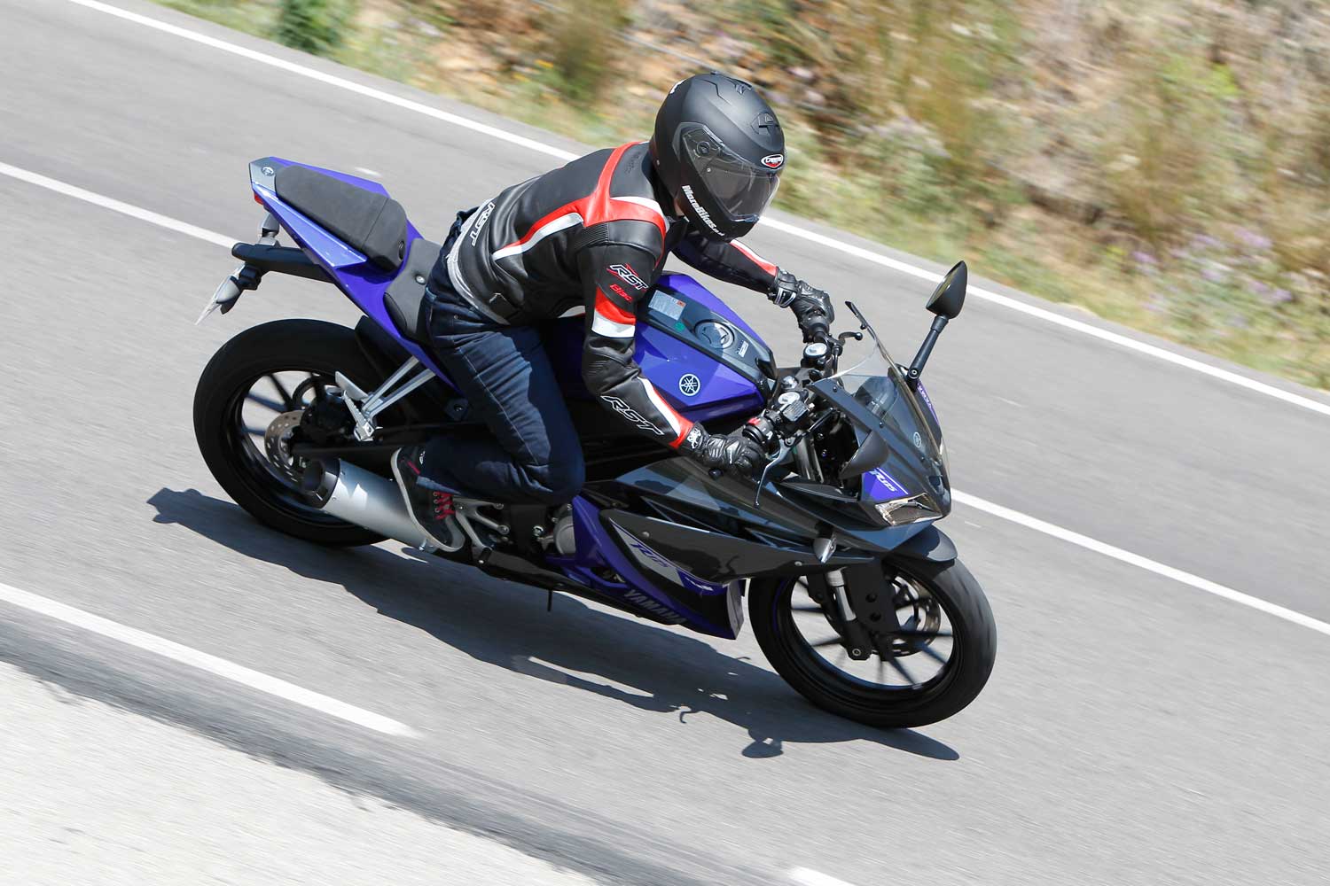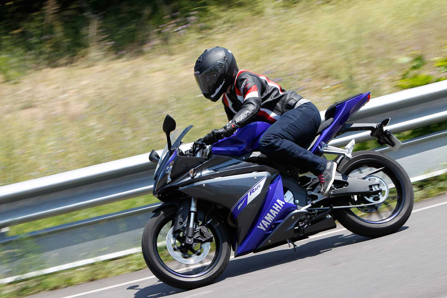 JG1_9157Riding in and out of town was brilliant – although it was out on the open roads where I particularly liked the YZF. The rigidity of the front end has been increased from that on the previous model, and it gives confidence going into even the tightest of bends. It has a real ‘big bike’ feel, and I found I had plenty of room – even those who were 6ft didn’t look out of place on the machine.
