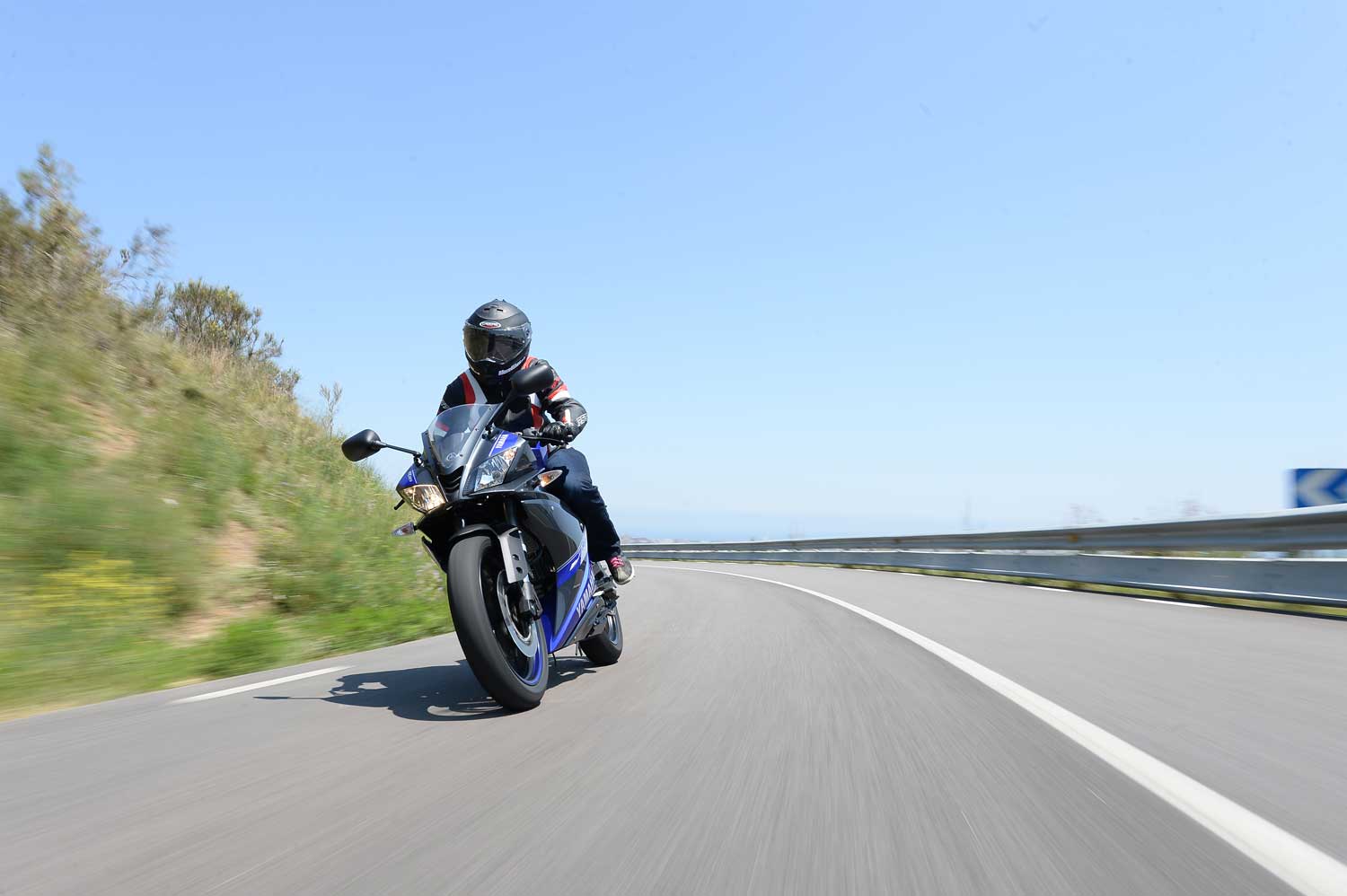 The suspension has been re-developed on both models, featuring a new link design, which allows for the carrying of a pillion without bottoming out. When you put your weight on the bike the suspension sags and reduces the seat height meaning that even at 5’6” I could place my feet down with confidence – something I often struggle with on other sports bikes. Out on the road, the linked monoshock rear suspension and KYB USD forks absorbed the bumps and dealt with changes in road surface brilliantly. The race-styled wheels rims have been specially developed, and have a ‘Y’ shaped design running with a Michellin 100/80-17 front and a 130/70-17 rear tyre, which provided plenty of grip.