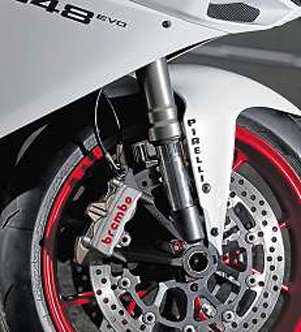 Tyres: Front – 120/70 x 17in Pirelli Diablo Supercorsa SP on 3.50 cast aluminium rim. Rear – 180/55 x 17in Pirelli Diablo Supercorsa SP on 5.50 cast aluminium rim