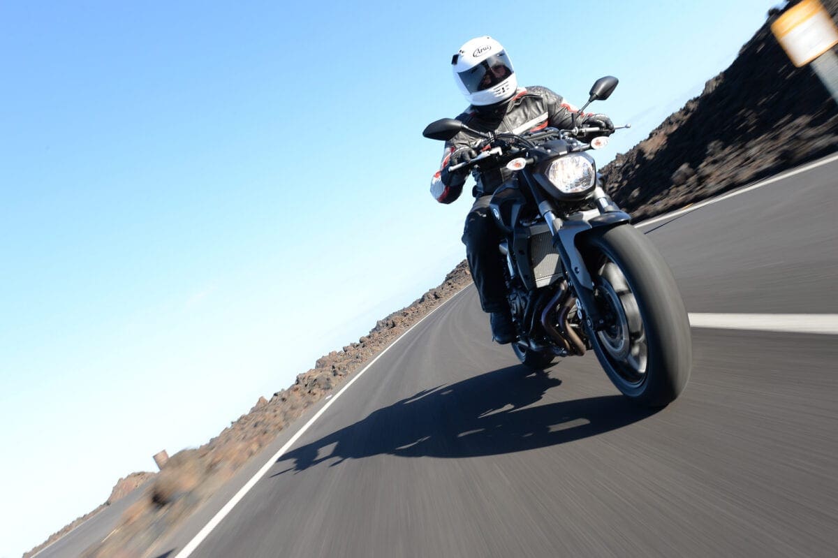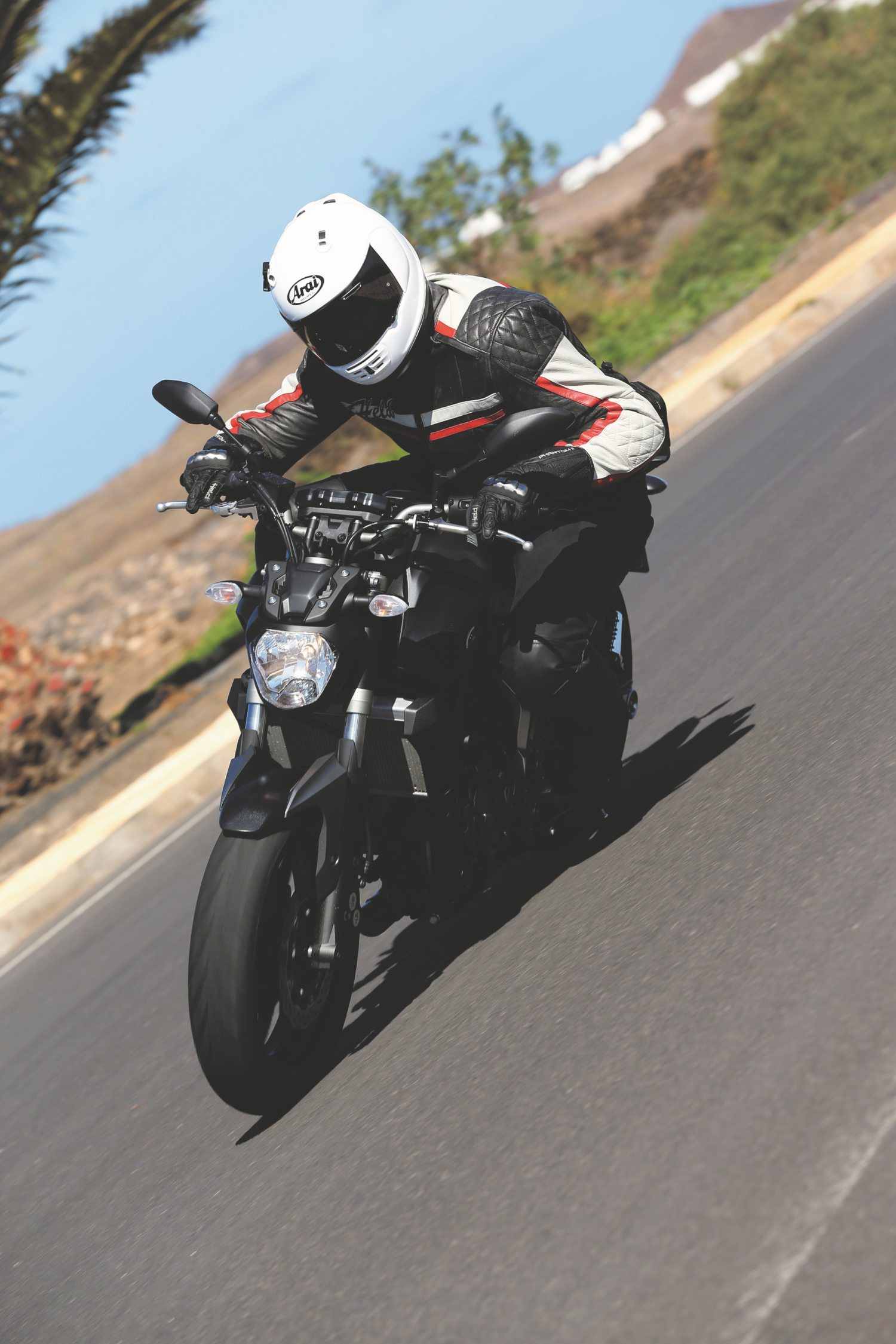 The MT-07 always feels under complete control, inspiring huge confidence. In fast bends the bike can feel a little soft, and whilst shooting the cornering pictures on a very fast roundabout, it didn’t feel quite as accurate as some more sophisticated suspension set-ups. To criticize it at this price-point for having average suspension is unfair though, as it easily out-performs anything most of us road-riders will throw at it. At the World launch, not one bike was crashed, and that included some crazy riding that saw scraped number plates!